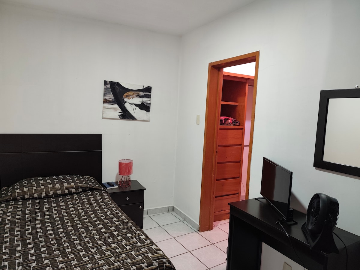 Habitación privada para hasta 3 personas • Litera: cama matrimonial (abajo) + individual (arriba) • Baño completo dentro de la habitación • Escritorio cómodo para trabajar o estudiar • Clóset abierto y espacio funcional • Ideal para estancias cortas o medias • Wi-Fi y servicios incluidos • A pasos del centro de Aguascalientes • Zona tranquila, segura y bien ubicada • Perfecta para viajeros solos, parejas o grupos pequeños