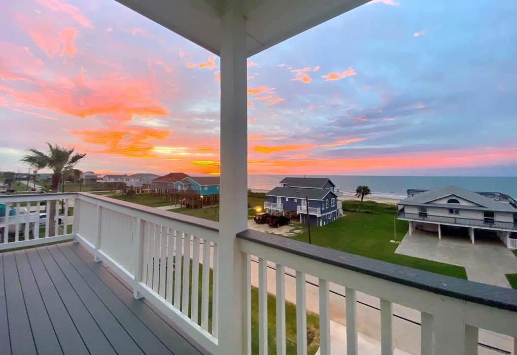 Hasta La Vista! Relaxe nesta casa calma e elegante à beira-mar. Sente-se no convés com seu café e ouça as canções dos pássaros costeiros e a calma do oceano. Grelhe alguns bons momentos no térreo. Tome um delicioso coquetel no pátio enquanto joga cornhole. Faça s'mores doces na fogueira. Faça uma caminhada rápida de 3 a 5 minutos de 1 quarteirão até a praia sem ter que se esquivar do trânsito ou atravessar uma rua principal. Desfrute de toda a história e charme da Ilha Galveston!