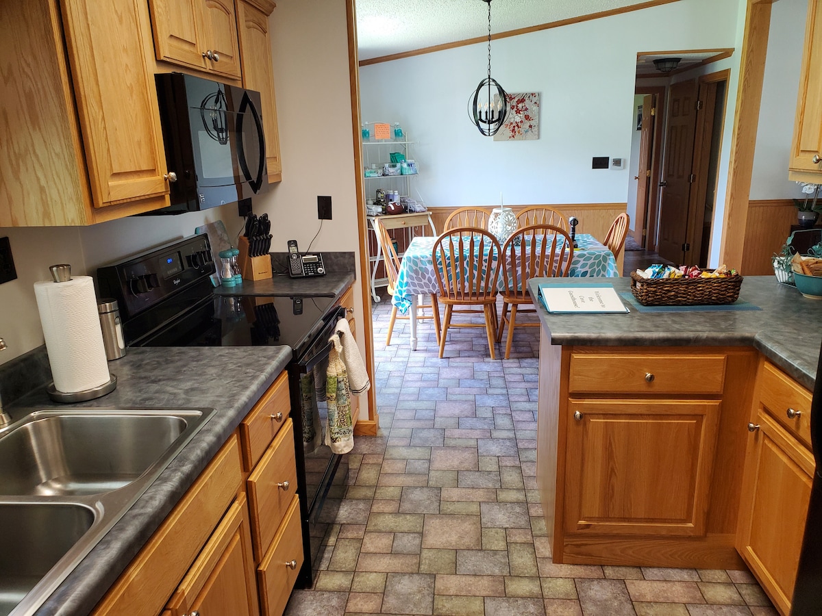 Quiet, single-story, 3-bedroom country home with everything you need for your stay.