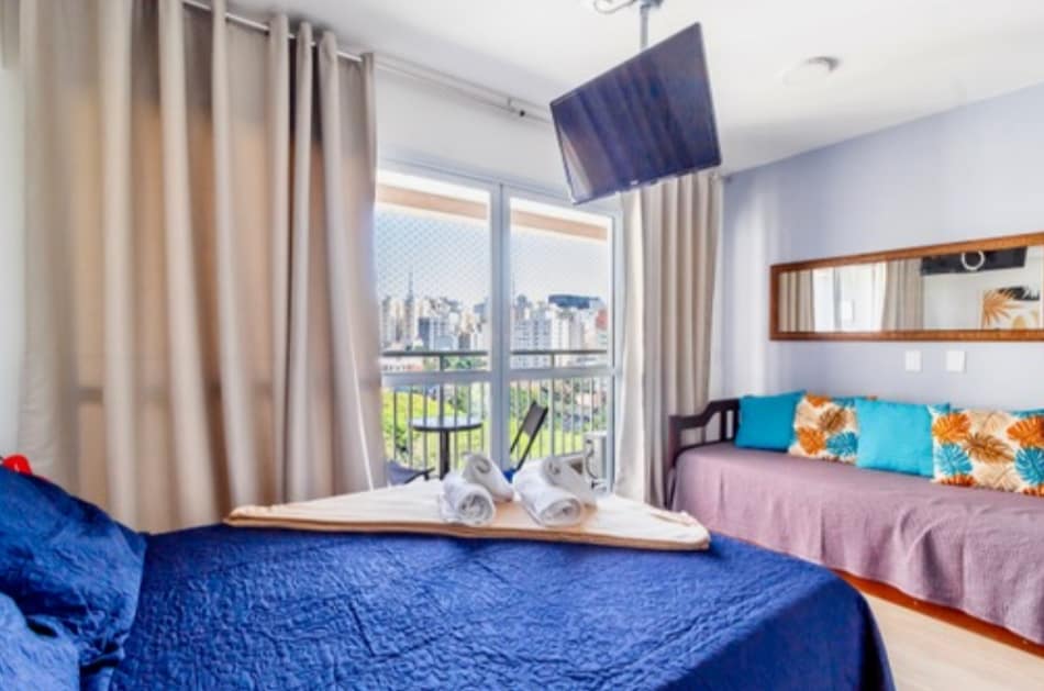 Estúdio funcional (cozinha completa) bem localizado na Liberdade próximo a Av. Paulista e Av. 23 de maio, além de faculdades, hospitais, farmácias, metrô e estacionamentos. Curta essa experiência em um espaço equipado com acomodação para até quatro pessoas, com grande conforto ar quente/frio . Você poderá ainda usufruir de uma bela vista, relaxar na Jacuzzi além de bela área de convivência. O condomínio oferece também coworking, academia e lavanderia.