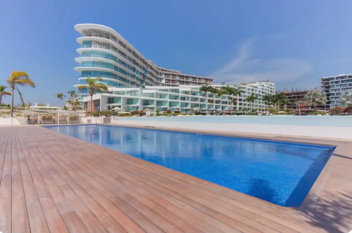 Temos uma bela decoração mexicana contemporânea, ainda temos lado da melhor praça de compras La Isla, cafés, supermercados, haverá vários restaurantes deliciosos e requintados muito próximos ao condomínio, com piscinas de praia e de borda infinita. O nascer e o pôr do sol do terraço que temos são IMPRESSIONANTES, assim como na mesma praia que está dentro do empreendimento, VIVELO, o apartamento tem 202 metros quadrados para desfrutar de 6 pessoas DE LUXO.