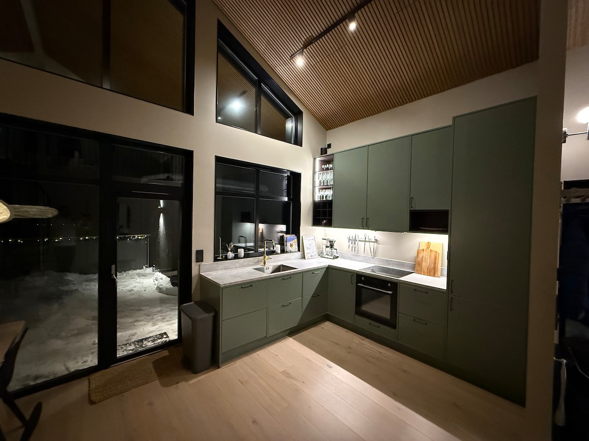 Bem-vindo à nossa casa projetada por arquitetos, com sauna, lareira e belas vistas do lago e das colinas ao redor. As trilhas de caminhada e ciclismo começam bem do lado de fora e, no verão, há um cais particular e um barco a remo. A sauna tem um chuveiro externo e um grande terraço com churrasqueira. Três quartos, cozinha totalmente equipada e carregamento gratuito para veículos elétricos. Destacada por um dos maiores jornais diários da Suécia como uma das melhores acomodações no Airbnb do país.