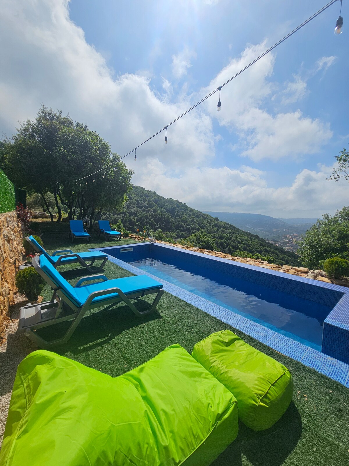 Tales and Fire, é um refúgio nas montanhas libanesas e um espaço privado para relaxar. Localizada a 20 minutos da cidade velha de Byblos Jbeil e a 45 minutos da capital Beirute, a casa de campo foi criada por um amante da natureza determinado a ajudar você a se desconectar do caos e se reconectar com a terra e o céu. A casa de campo tem uma piscina privada com vista para as montanhas, uma casa na árvore, uma chaminé e uma fogueira, o que a torna a experiência perfeita para as suas merecidas férias.