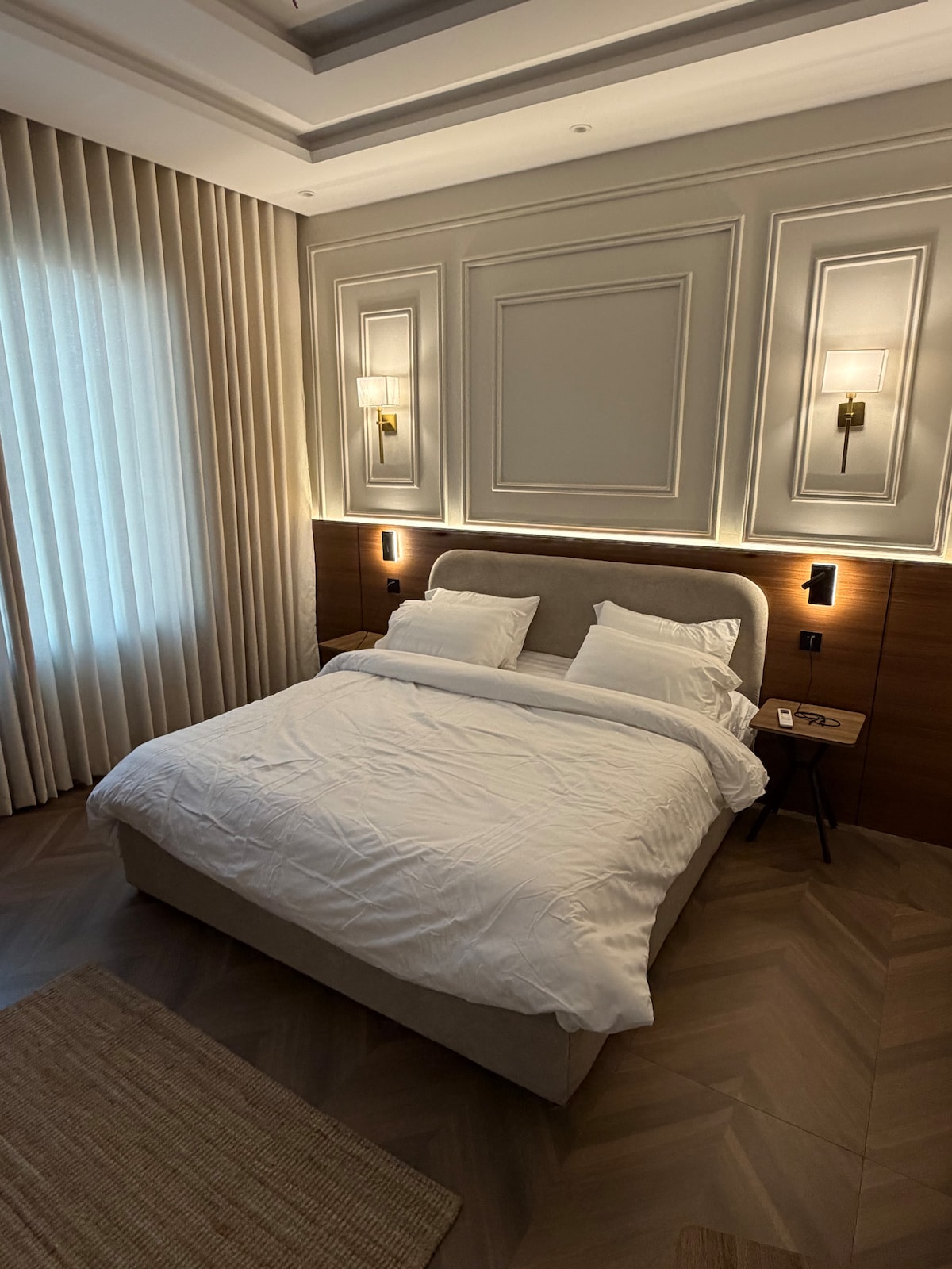 Viva o auge do luxo em um elegante loft duplex em Al Rawdah, Jeddah — projetado com um toque moderno e sofisticado que oferece total conforto e privacidade. Relaxe na sua jacuzzi privativa e desfrute de uma experiência cinematográfica em uma TV QLED de 85 polegadas. Perfeitamente localizado perto da Rua Hamad Al Jasser, perto dos melhores cafés e restaurantes da cidade. Inclui estacionamento privativo, limpeza gratuita mediante solicitação e uma equipe profissional que garante uma estadia perfeita. Estadia de luxo: onde a elegância encontra o conforto.
