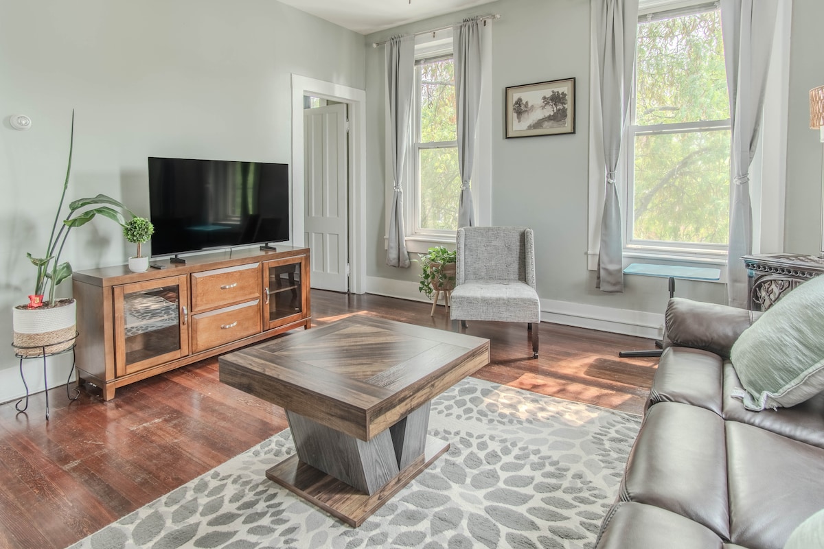 Relaxe com a família nesta casa tranquila localizada na cidade de Watertown. 2 quartos com 1 cama queen size e 1 cama de tamanho completo. Recém-reformado e com paisagens deslumbrantes. Garagem privativa a apenas 5 km do distrito comercial, restaurantes e do centro de Watertown. A 3 km da área de esqui Dryhill e a apenas 5 minutos do Hospital Samaritan. Não muito longe do aeroporto ou do Lago Ontário Oferecemos uma cozinha completa, 3 TVs inteligentes com Wi-Fi nos quartos e na sala de estar, Internet, lareira, entrada frontal e traseira, decks nas portas frontal e traseira, ar-condicionado