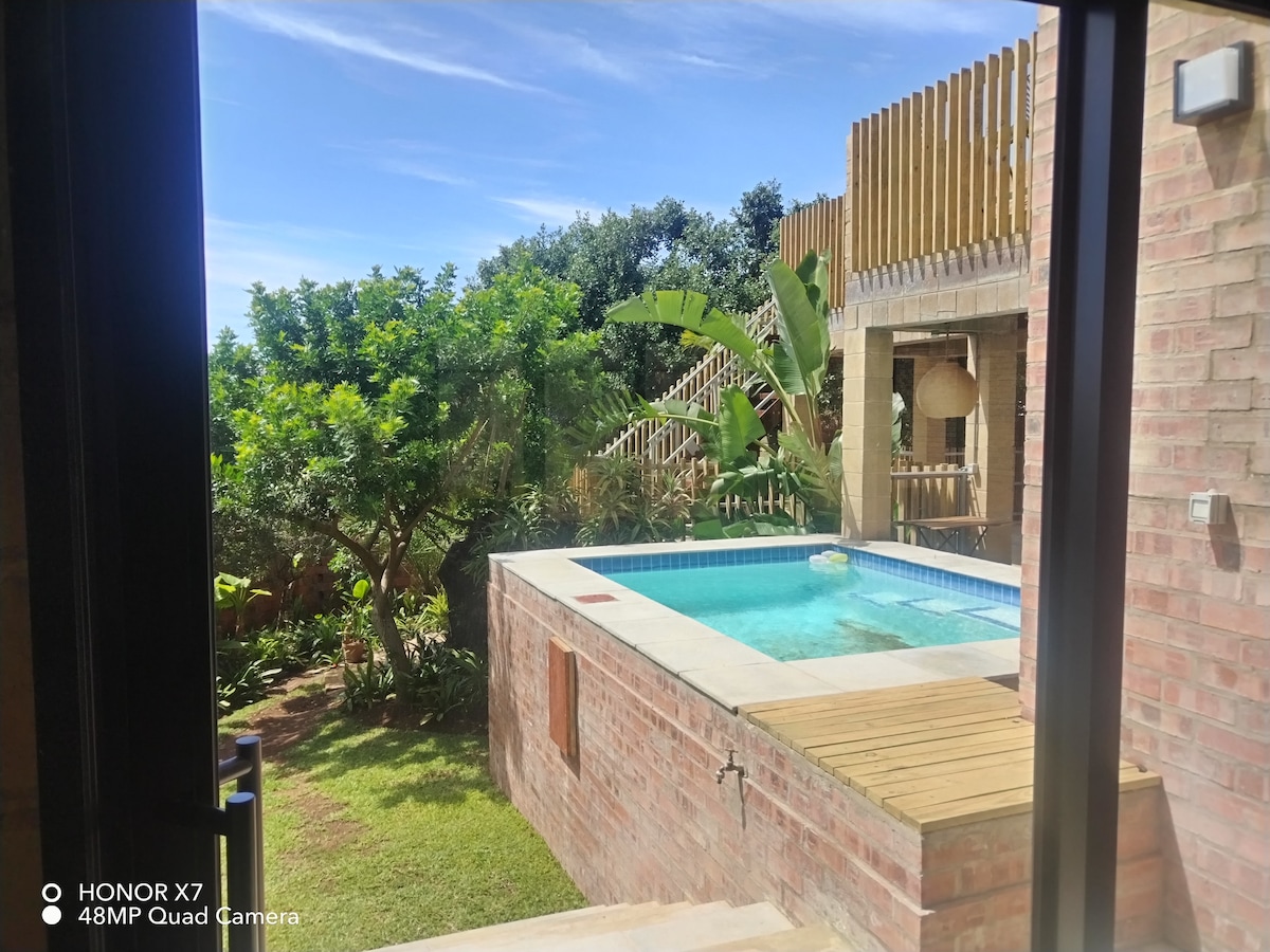 Moderno, confortável, Surfe e a apenas 2 minutos a pé do mundialmente famoso Super Tubes Surf Break. Situado na estrada principal Da Gama, em frente ao Supers. Acomoda 6 pessoas Casa privada com cozinha. Estritamente não é uma casa de festas. Com 3 quartos, oferece 1 cama king size, 1 cama queen size e 2 camas de solteiro. Você vai brigar por quem fica com o espaçoso quarto Loft. Estacionamento seguro para 1 veículo grande e 1 pequeno. Uma moderna “Vibe da Ilha” com a combinação de palha, madeira e pedra. Um verdadeiro paraíso dos surfistas! TV via satélite e Wi-Fi.