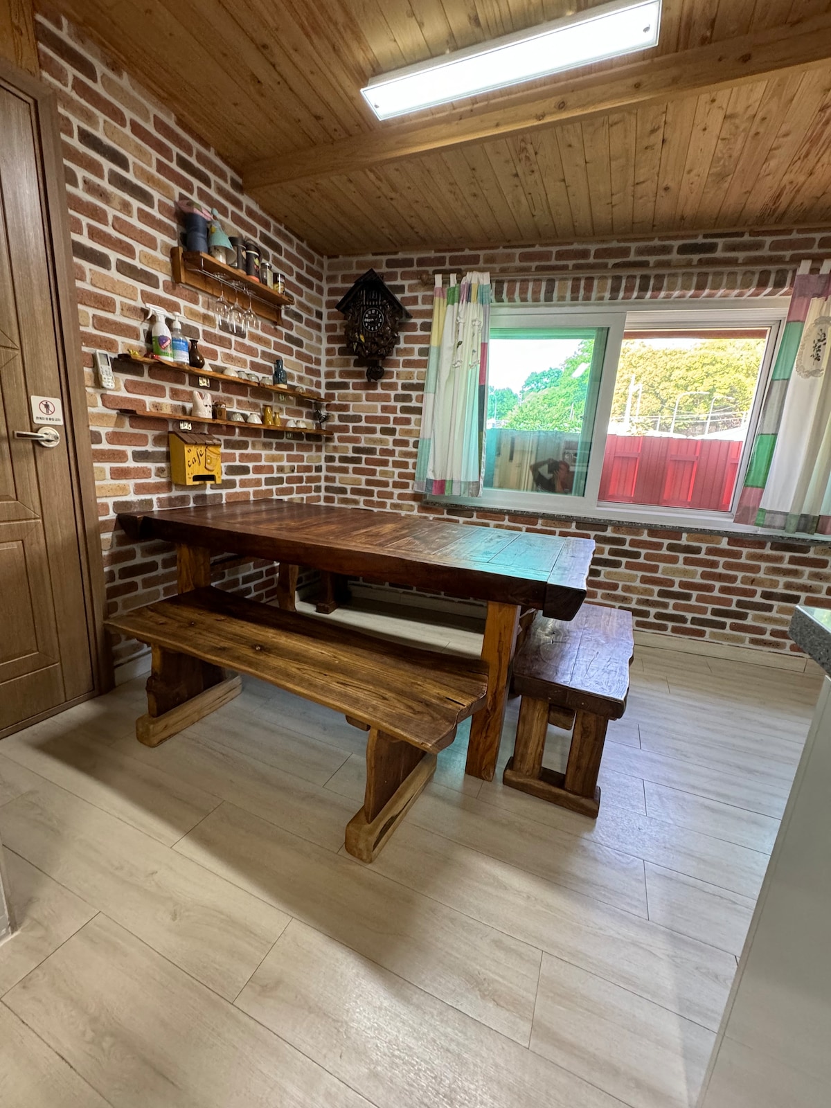 Descrição DA▣ acomodação Todo o ▶ 2º andar é usado por uma única equipe (10 pessoas) e um colchão é fornecido para mais 8 pessoas. Korea Stay Selection Certified by ▶"Korea Tourism Organization" ▶ Pequena festa Bom para reuniões de grupo ▶2-3 minutos a pé (restaurantes, lojas de conveniência, cafés bonitos, galerias, salões memoriais) Penguin Village fica a 5 minutos ▶a pé. Adjacente ao Hospital ▶Universitário (Universidade Nacional de Chonnam. Universidade de Chosun. Christian) Namgwang Joo Night Market. Extintor de ▶incêndio de segurança. Detector de monóxido de carbono. Alarme de gás da cidade instalado. 2 entradas de emergência Pré-pago no momento da reserva com um ▶cão por cão (Por cão: 15000 KRW) Permitido fumar▶ ao ar livre ▶ A roupa de cama é fornecida para hóspedes adicionais. 5 aparelhos de ▣ ar condicionado em todos os espaços disponíveis para os hóspedes. 3 TVs. 2 armários ▶Quarto 1 Bunker Bed (1 quarto) ▶Quarto 2 Beliche (2 pessoas) ▶Quarto 3 Beliche (2 pessoas) Quarto ▶4 Cama de Terreno (Quarto de Casal) ▶2 Banheiros (1 Interior. 1 Exterior) ▶Sala de estar. Mesa para 10 pessoas. Sofá de madeira ▶Máquina de lavar roupas Permitido fumar▶ ao ar livre ▶Equipamento esportivo AO AR livre