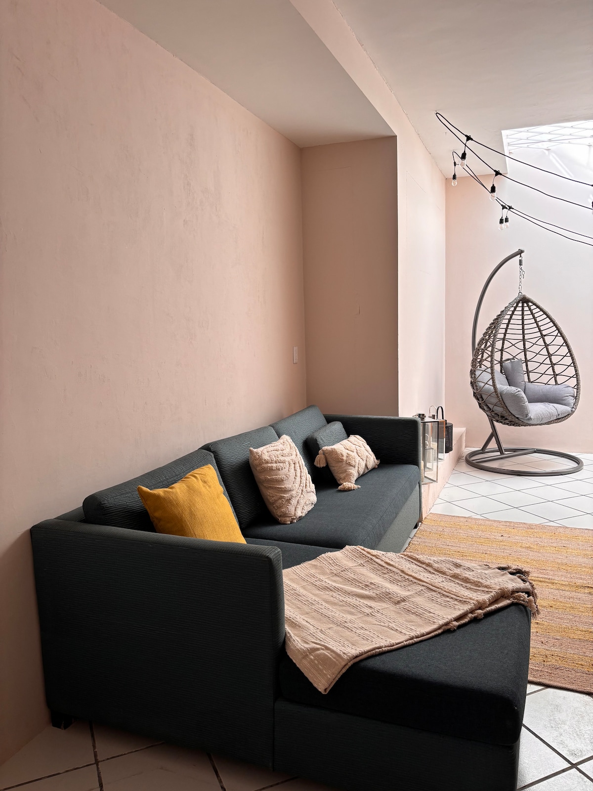 Lindo apartamento no coração da cidade mais animada do México, localizado no último andar e com vista para uma das principais ruas, onde você pode se sentar confortavelmente na varanda, apreciar a vista das torres ou contemplar um belo pôr do sol. Serviços como bancos, minimercado, farmácias e restaurantes ficam a menos de 5 minutos de distância. Estacionamento gratuito na rua principal.
