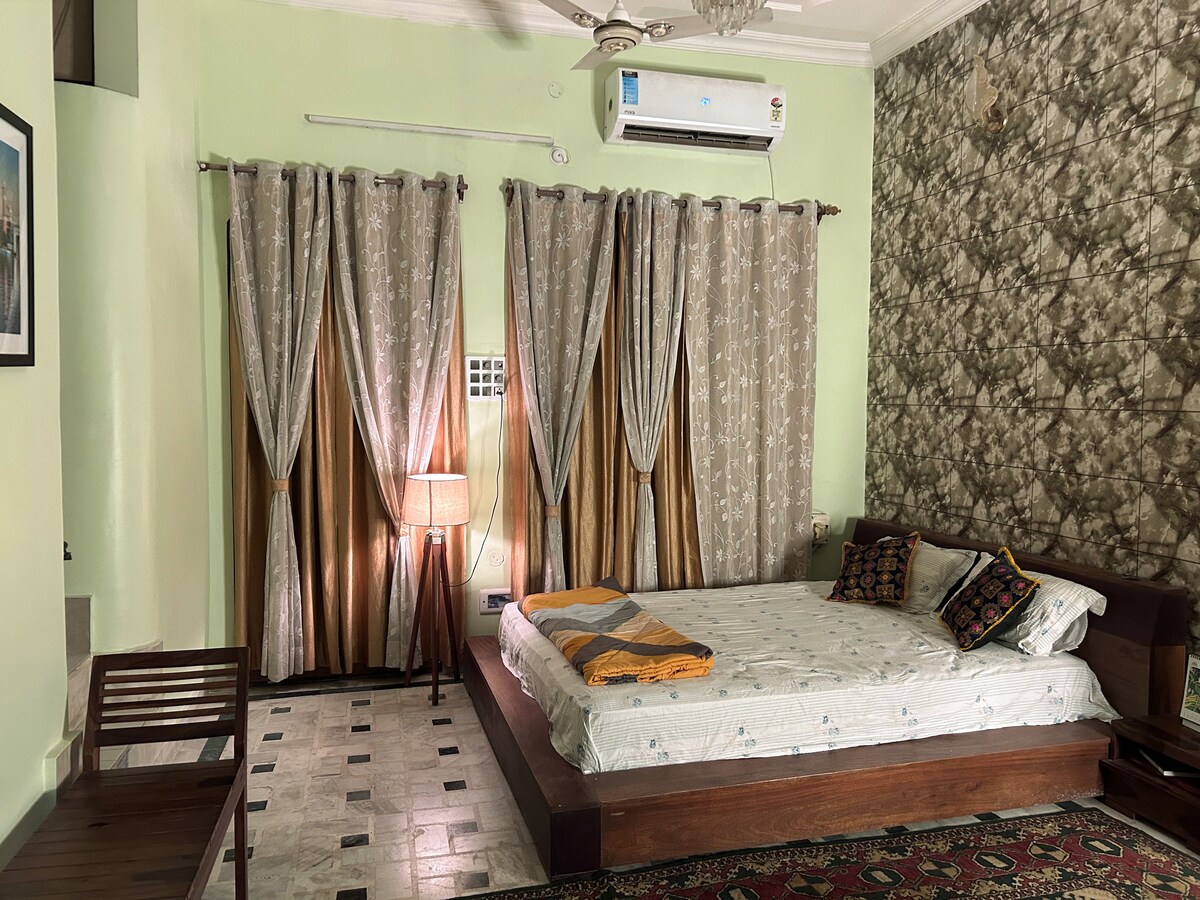 Divirta-se com toda a família nesta acomodação tranquila, onde você pode ter acesso fácil a Maagh Mela. AC, bem como aquecedor de quarto em um quarto. Instalações de transporte fáceis disponíveis. Muitos alimentos, mercearias, lojas médicas disponíveis facilmente. Swiggy, zomato, blinkit, zepto disponíveis. Minha família mora no primeiro andar, então todos nós estamos aqui para ajudar todos vocês e ajudar nas menores coisas também. A cozinha não está disponível, mas fornecemos água e chá. Aguardando ansiosamente para receber todos vocês🤗