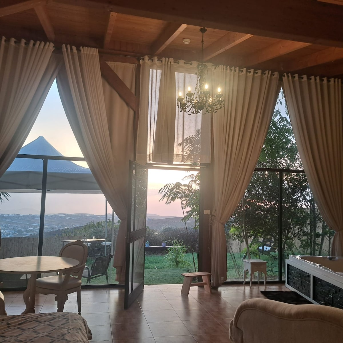 Uma cabana mágica em uma paisagem galileia, equipada com tudo, com vista para a floresta com um jardim ao ar livre e uma vista para a montanha Um banho duplo ao ar livre mimos Área de estar ao ar livre, mesa corta-fogo TV com variedade de canais wi-Fi Ar-condicionado no quarto e na sala de estar Kitchenette totalmente equipada Ervas no jardim para o chá Máquina Nespresso lençóis e toalhas, Sistema de água quente Opção para deliciosos cafés da manhã duplos
