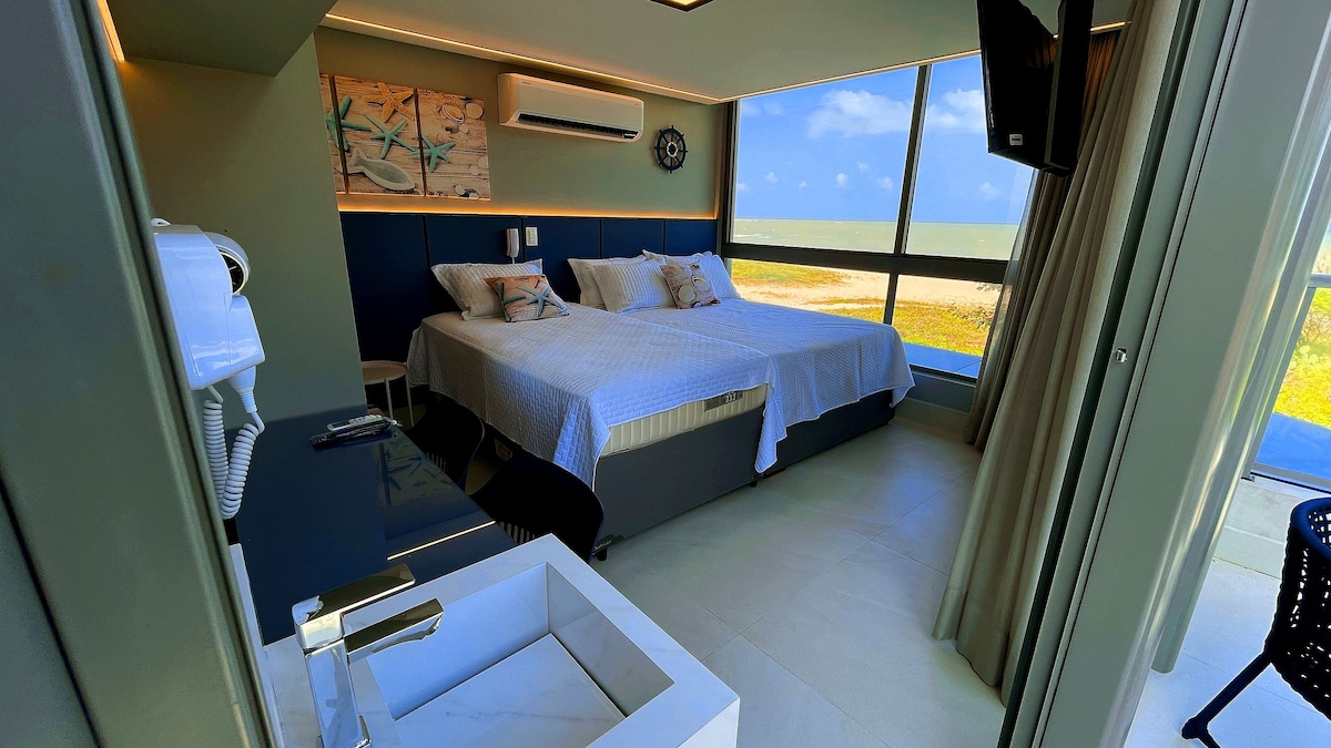 Viva dias inesquecíveis neste flat pé na areia, com jacuzzi privativa e uma decoração que une conforto e sofisticação. A poucos passos do mar do Bessa, o espaço foi pensado para receber até 4 hóspedes com praticidade: cozinha completa, área de jantar acolhedora e uma atmosfera moderna e relaxante. Ideal para quem busca momentos de descanso, bem-estar e uma experiência única à beira-mar — em um dos endereços mais encantadores de João Pessoa.