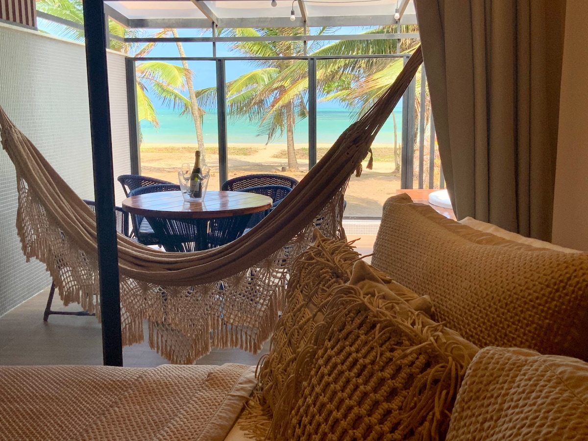 Loft com hidromassagem frente mar e pé na areia