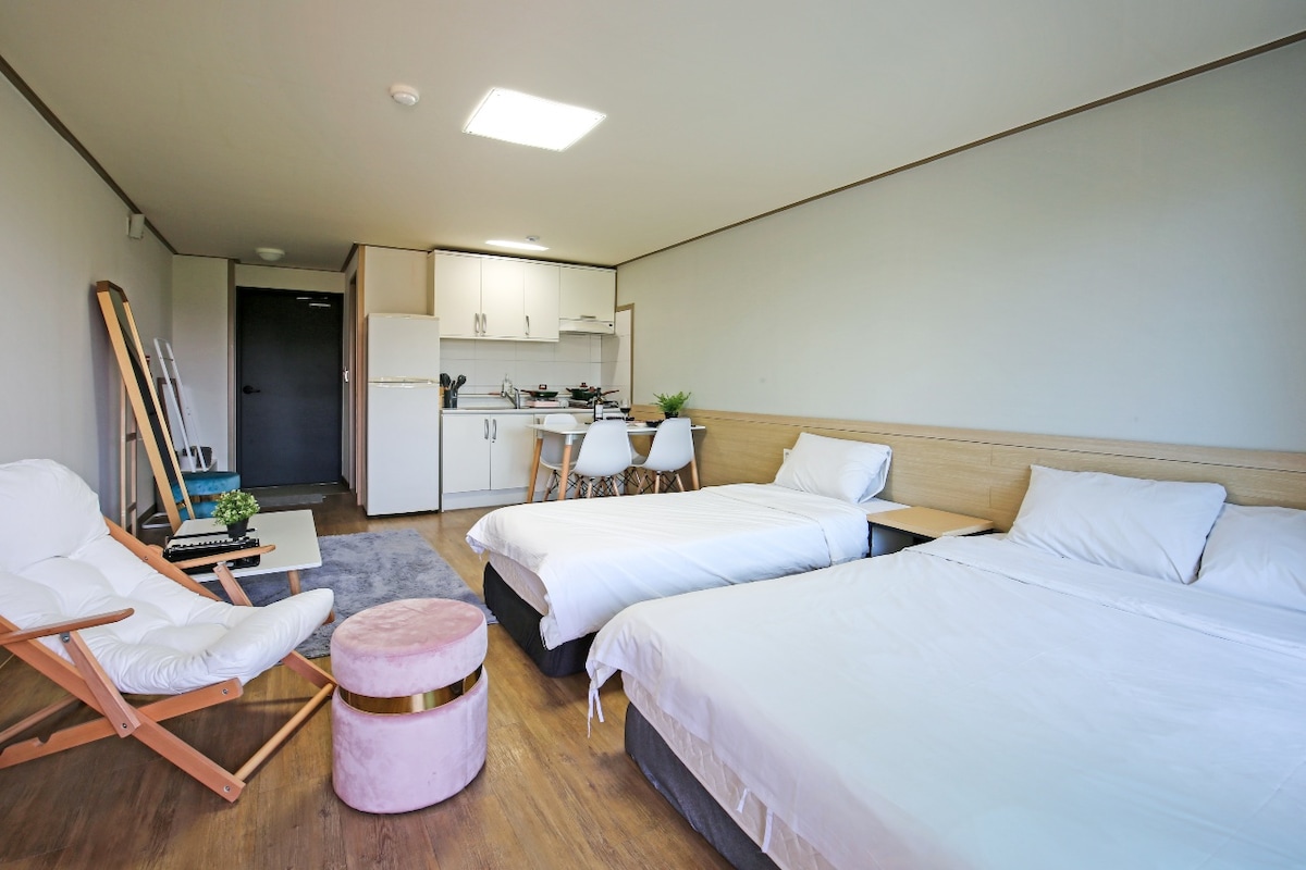 Olá, bem-vindo🙌 ao Acozy Stay:) 🔸Armazenamento de bagagem gratuito 24 horas, pode ser armazenado na frente do hotel no 2º andar 🔸Aeroporto 5 minutos / Lotte Duty Free 1 minuto / Shilla Duty Free 5 minutos 🔸Netflix / Wi-Fi grátis / Cama queen size para duas pessoas Localizado na avenida🔸 central de Shinjeju 🔸Amplo espaço de estacionamento 🔸Cães são permitidos (exceto para cães de pequeno porte sem perda de pelo, como Malti, Poodle, Pomeranian, Malte Poo, Bichon, não são permitidos, taxa de uso adicional de 15.000 won por noite) O 🔸aquecimento é feito por aquecimento de piso a gás da cidade, não por aquecedor, por isso é quente e o ar condicionado funciona bem no verão 🔸Espaço comum 2º andar máquina de lavar e secar roupa disponível gratuitamente 🔸toalhas, secador de cabelo, sabonete, xampu, condicionador, sabonete líquido para o corpo Verifique a🔸 política de reembolso, exceto que o reembolso só será processado se o voo for cancelado. (Por favor, envie o histórico de cancelamento) Obrigado :)