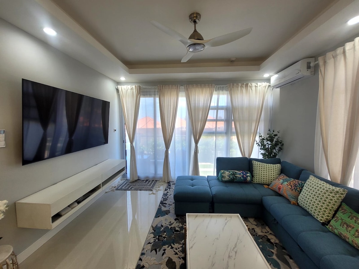 Modern, 1BR, ground level apartment with all the modern amenities you will need for a perfect stay. Start your day having coffee on the patio gazing at the awe-inspiring coastline and turquoise lagoon. The property is part of a secure, gated development with a private community pool for guests to laze away while perfecting their tan, or hide in the shade sipping on a cold drink. You're close enough to the airport, shopping malls and nightlife - but nestled on the outskirts for quiet relaxation.