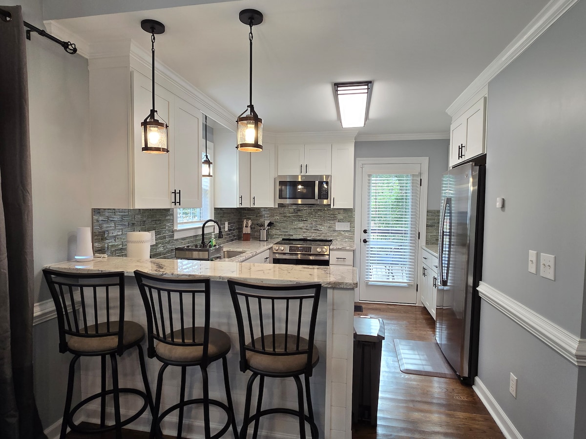 Remodelado com todos os confortos que você deseja... lençóis macios, travesseiros macios, cortinas blackout, chuveiro grande, cafeteira Keurig, sala de estar confortável com TV grande, espaço ao ar livre relaxante! A poucos minutos do centro da cidade, centro de convenções, PNC, Red Hat, Dorothea Dix Park, Walnut Creek, restaurantes requintados ou mergulhos locais premiados, cervejarias, boutiques e I-440 facilitando a viagem para o aeroporto. Enorme quintal cercado para bebês de quatro patas (inclua-os no registro). Anfitrião facilmente acessível! Deve ter 25 anos ou mais.