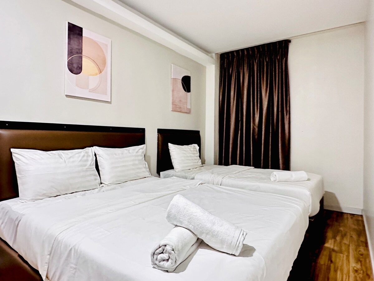 RESERVE INSTANTANEAMENTE! RECÉM-RENOVADO para sua estadia! • Muito bom custo-benefício para o seu $$! • 660 pés quadrados, bom para famílias e amigos pequenos • No centro de Johor Bahru • Viva à direita na JB Oldest Heritage Street • Em frente ao famoso ícone da herança JB "CASA VERMELHA" • Mesma rua da famosa loja de pão/bolo "Hiap Joo" • 1 minuto a pé do edifício Sultan Ibrahim • 10 minutos a pé de Singapura/JB Custom • 10 minutos a pé do Centro Comercial City Square • 30 minutos de carro do Aeroporto Senai • WI-FI(custo extra de RM40 para 10 GB) - Pedido antes da chegada