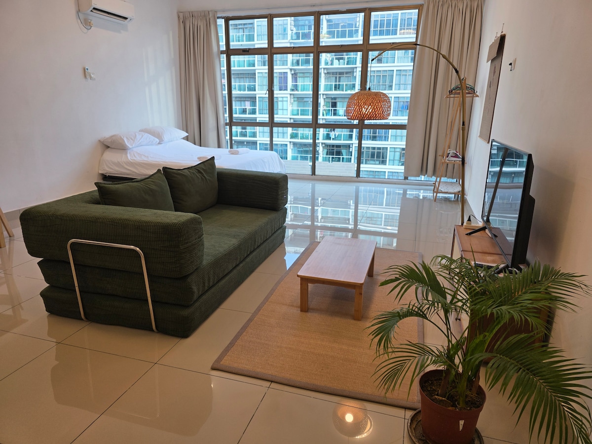 Explore a área mais acolhedora do apartamento moderno e elegante com vistas incríveis da cidade. Excelente localização a 5 minutos de carro de Johor Bahru, CIQ (para Singapura), esta é a melhor localização que pode viajar em torno de Johor Bahru e Singapura. Não importa se você está aqui para viagens de negócios ou em família, este apartamento de dois quartos está idealmente situado para você.