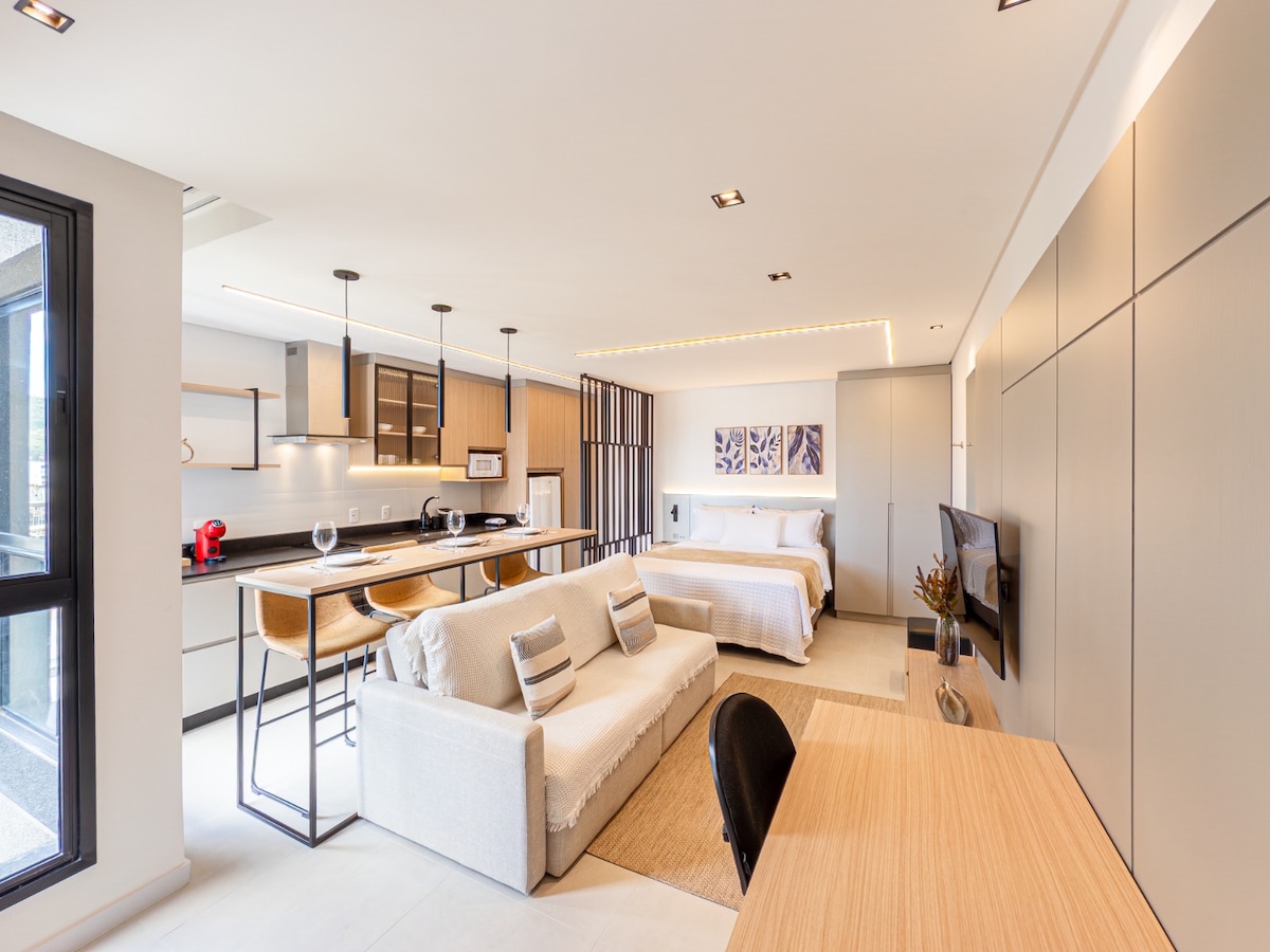 Studio Moderno em Residencial Completo | Piscina,