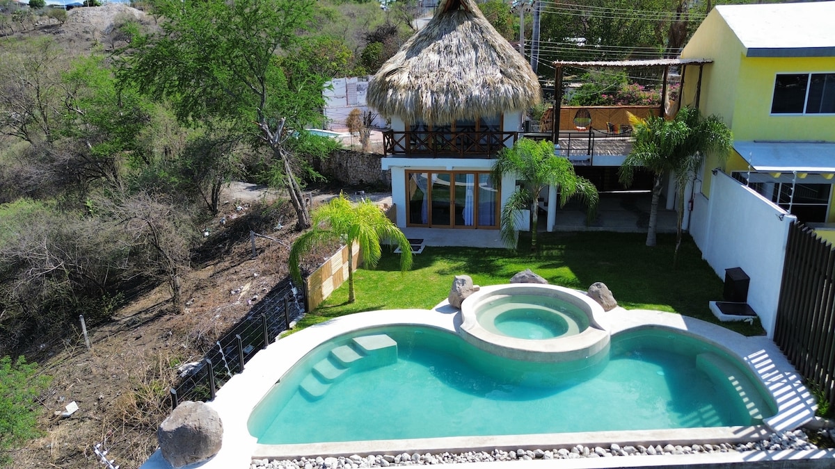 Bem-vindo à Quinta El Capricho em Tequesquitengo, Morelos! Ideal para aproveitar com família e amigos, com todas as comodidades necessárias para relaxar. Comodidades: Jacuzzi aquecido e piscina privada com espreguiçadeiras. Área de churrasco, bar de bebidas e TV com WiFi e canais a cabo. Aceitamos animais de estimação, traga seu amigo de quatro patas. Perfeito para pequenas reuniões ou para relaxar em privacidade.