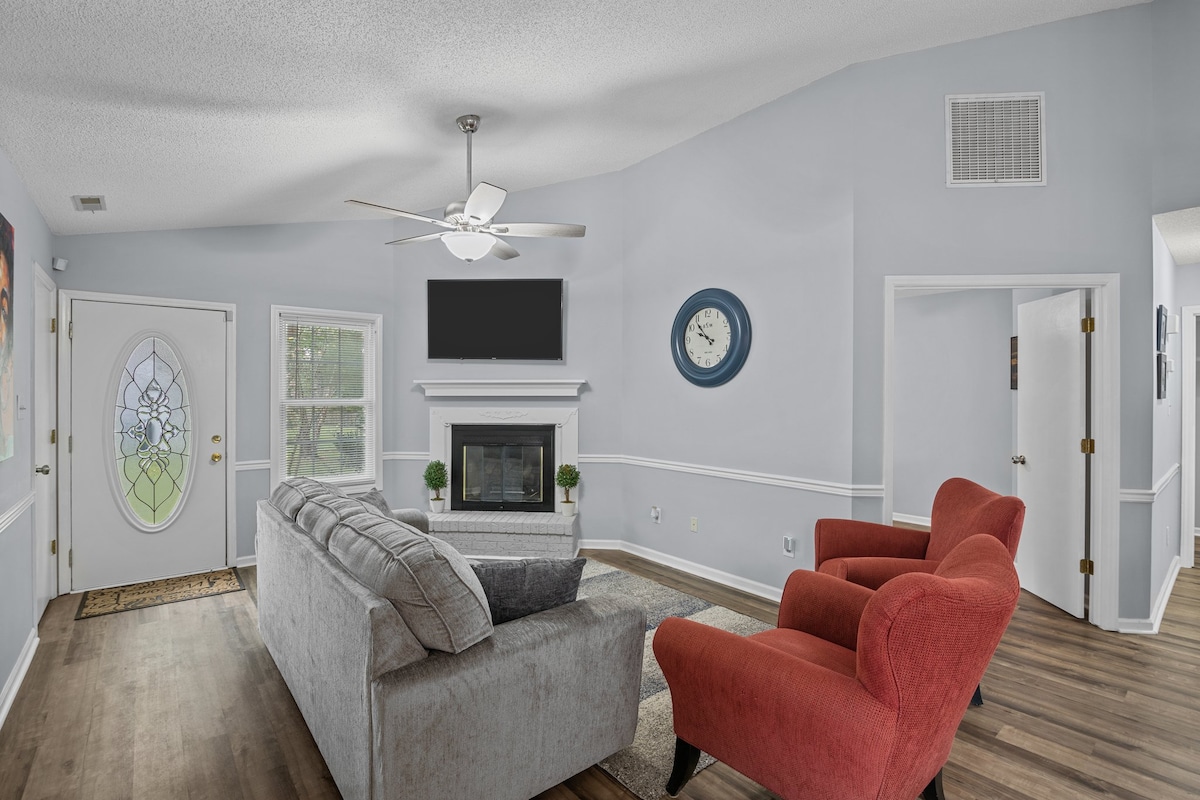 Relaxe com toda a família nesta acomodação tranquila. Localizado em um beco sem saída e a uma curta distância a pé do supermercado Piggly Wiggly, Correios, Posto de Gasolina/Delegacia e estrada principal para Jacksonville. 7 min. de carro do novo Walmart, 10 min. do aeroporto, 15-20 min. de Jacksonville. Cozinha totalmente abastecida para atender às suas necessidades culinárias! Quintal privativo totalmente cercado. Relaxe à sombra das árvores enquanto desfruta da churrasqueira. Sofá-cama queen size disponível. Tomadas/armários de cozinha à prova de crianças.