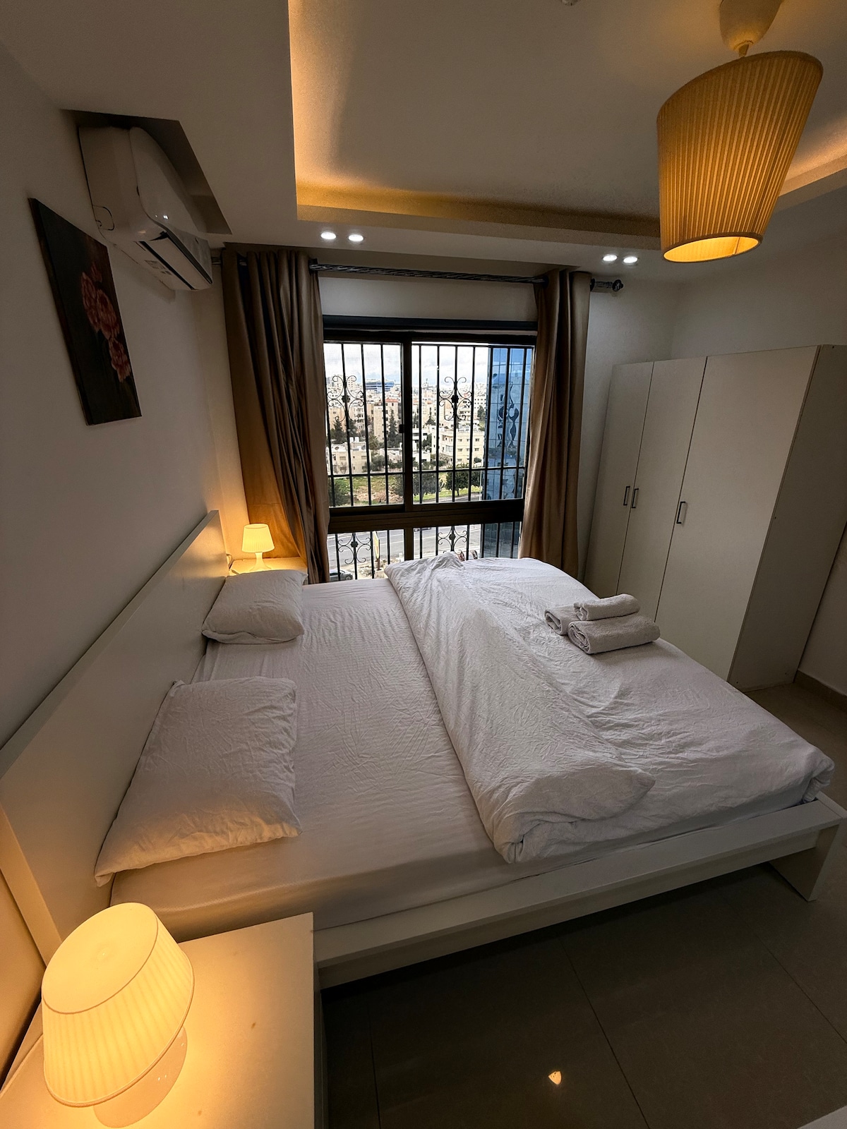 Lindo apartamento a 5 minutos do Taj Mall e da embaixada saudita. Muito tranquilo 2 camas, 2 banheiros em torno de instalações e bela vista. Abdoun é a área mais segura e com mais serviços em Amã, perto de todas as principais atrações. O apartamento tem a maioria dos eletrodomésticos e comodidades, é muito luxuoso e parece aconchegante com interior deslumbrante, lareira e muito mais! Tem 2 supermercados a uma curta distância a pé e é um bairro muito seguro e tranquilo, se tiver alguma dúvida não hesite em perguntar.