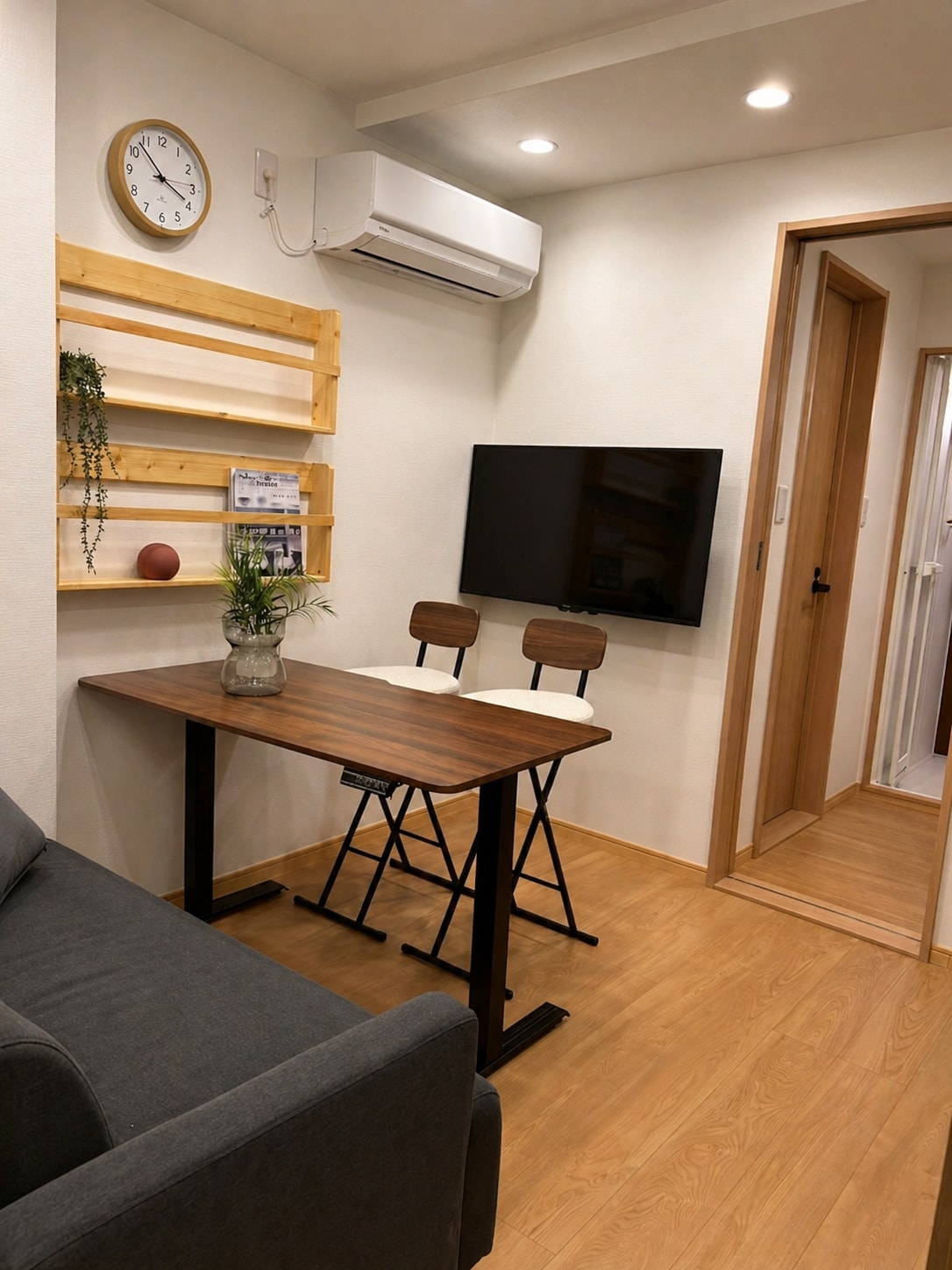Acomoda até 4 pessoas. São apartamentos tipo estúdio, localizados do 2º ao 9º andar. Há uma cozinha e uma mesa de jantar no quarto, Você pode desfrutar de suas refeições confortavelmente, como se estivesse em casa. Além disso, o quarto também está equipado com Wi-Fi gratuito e uma máquina de lavar roupa, sendo ideal para estadias de longa duração. O café é fornecido gratuitamente no saguão compartilhado do 1º andar. Relaxe no sofá e aproveite. <Acesso> A estação de trem mais próxima é a de Kyobashi, que fica a 2 minutos a pé. Linha JR Osaka Loop, Estação Kyobashi Linha Keihan Metrô de Osaka Como você pode ir para Quioto e Kobe sem precisar trocar de trem, este é o local perfeito para servir de base para passeios turísticos em Kansai. Não há estacionamento no hotel. Se você vier de carro, use o estacionamento pago nas proximidades. * Por favor, informe-nos com antecedência no momento da reserva se a acomodação for apenas para menores de 18 anos.