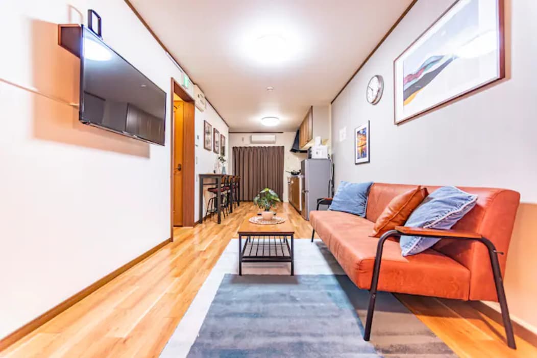 民宿位于大阪市中心的房源,长堀桥车站步行5分钟,直达关西空港的巴士站步行8分钟。心斋桥,和道顿堀步行也只需8分钟, 。超市和便利店步行3分钟内。 超级便利,可以充分享受世界著名的大阪美食和观光景点。有1个房间, 一个客厅厨房、三张双人床,最多可住6个人哦 。 ,不需和他人共用 ,房间整洁干净 全新家具家电 提供免费WIFI ,入住这处位于市中心的房源,让家人享受一切近在咫尺的便利。