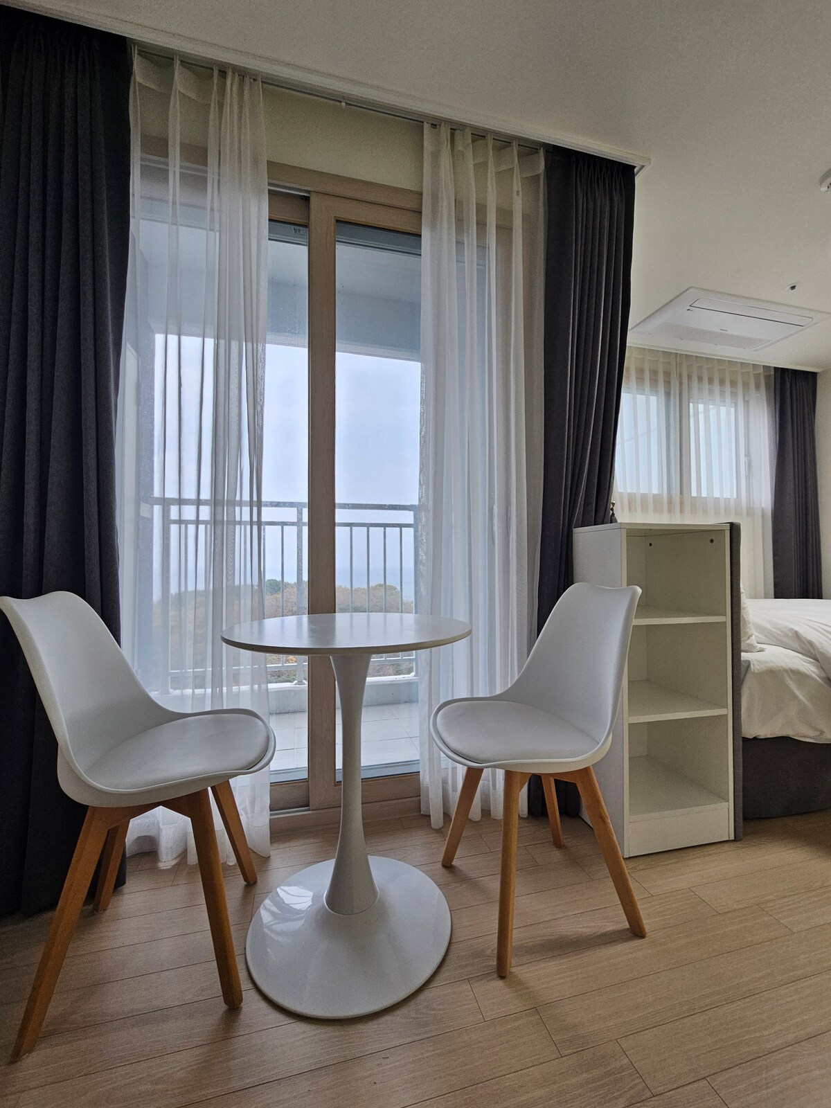 É 🥭mangostim. Único quarto quádruplo em todo o hotel O terraço será🧋 o melhor lugar para você apreciar a vista do mar🏖️ e tomar um chá delicioso. A praia fica a 10 segundos do saguão do prédio🏝️ e há dois estabelecimentos hoteleiros ao lado do prédio. São dois quartos, o primeiro quarto com cama king size e o segundo quarto com cama queen size, ambos🛏️ com camas amplas e confortáveis.💟 Na sala de estar há uma mesa de jantar para🍽️ 4 pessoas para você se sentir confortável durante o chá, lanches, vinho, uísque, etc. Disponível (vinho. uísque. copo de soju) Está pronto. Os utensílios de cozinha estão prontos. O que não é possível Assar carne (carne crua) e carne grelhada é possível. Por favor, entenda que não é possível para os hóspedes cozinhar peixe, carne crua, marisco, etc. Por favor, entenda que é impossível para os hóspedes Todo o interior do quarto tem vista para o mar e você pode apreciar🌊 a vista para o mar até mesmo na janela da sala de jantar. ~ O nascer do sol🌅 pode ser visto da sala de estar do primeiro quarto do terraço. Então, até breve.🙏🏻