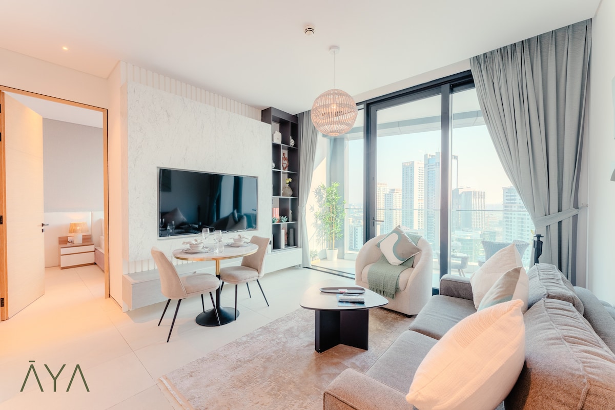 Experience beachfront living at Grand Bleu Tower on Dubai’s exclusive Emaar Beachfront. This stylish 1BR offers breathtaking views of the Atlantis, Palm Jumeirah and Arabian Sea — stunning by day, mesmerizing at sunset, and sparkling at night. Unwind by the infinity pool, relax on the private beach, or enjoy the calm from your balcony. Designed for comfort and elegance, it’s the perfect setting for an unforgettable Dubai stay.
