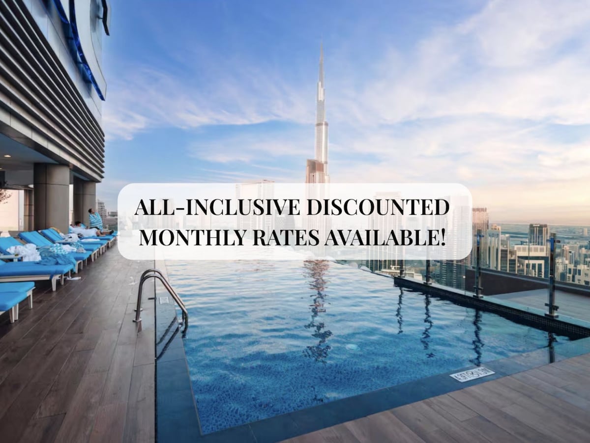 Experimente o luxo em nosso apartamento exclusivo e totalmente servido, aninhado em um hotel 5 estrelas. Desfrute das vistas deslumbrantes do icônico Burj Khalifa da maior piscina de borda infinita no 64º andar, mantenha seu regime de fitness em nossa academia de última geração com vistas panorâmicas da cidade e mergulhe em nosso elegante apartamento, complementado por uma deslumbrante vista do centro da cidade e do mar da nossa varanda no 33º andar e uma cozinha totalmente equipada.