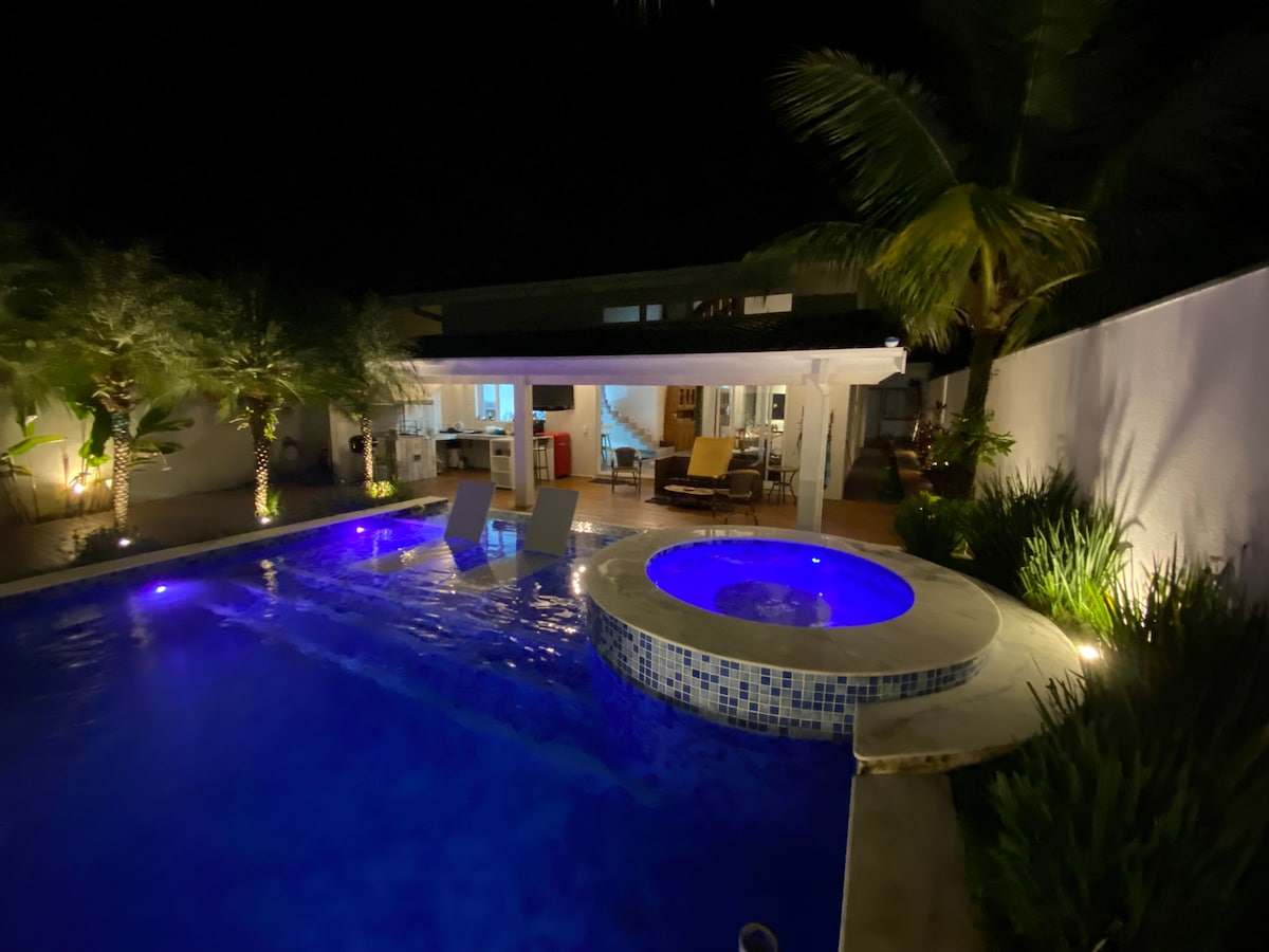 Linda casa em condomínio fechado (espécie de Resort). A casa possui deliciosa piscina privativa com borda infinita, e amplo espaço externo com área gourmet (churrasqueira/forno de pizza). Nossa diária já contempla como cortesia serviço diário de limpeza, arrumação e apoio de cozinha (até 8h/dia em horário comercial), incluso roupa cama/banho. Além de serviço de praia, o condomínio conta com piscina, Quadra de tenis, beach tenis, squash, sauna, cinema, brinquedoteca e academia.