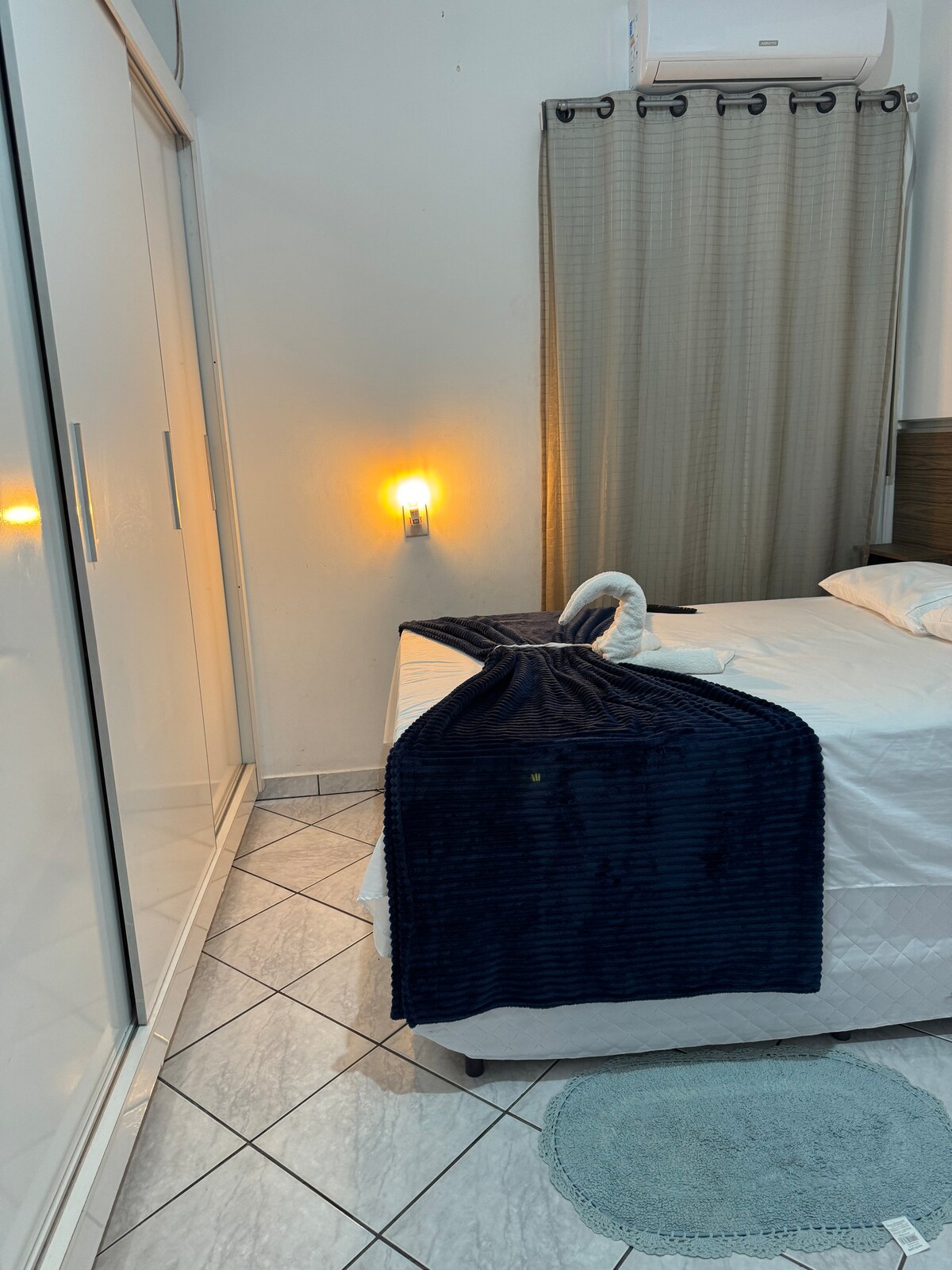 Relaxe neste espaço calmo e cheio de estilo. Sua família poderá contar com a segurança de um condomínio fechado. Todos os cômodos climatizado. Ideal para quem viaja a turismo ou a trabalho.