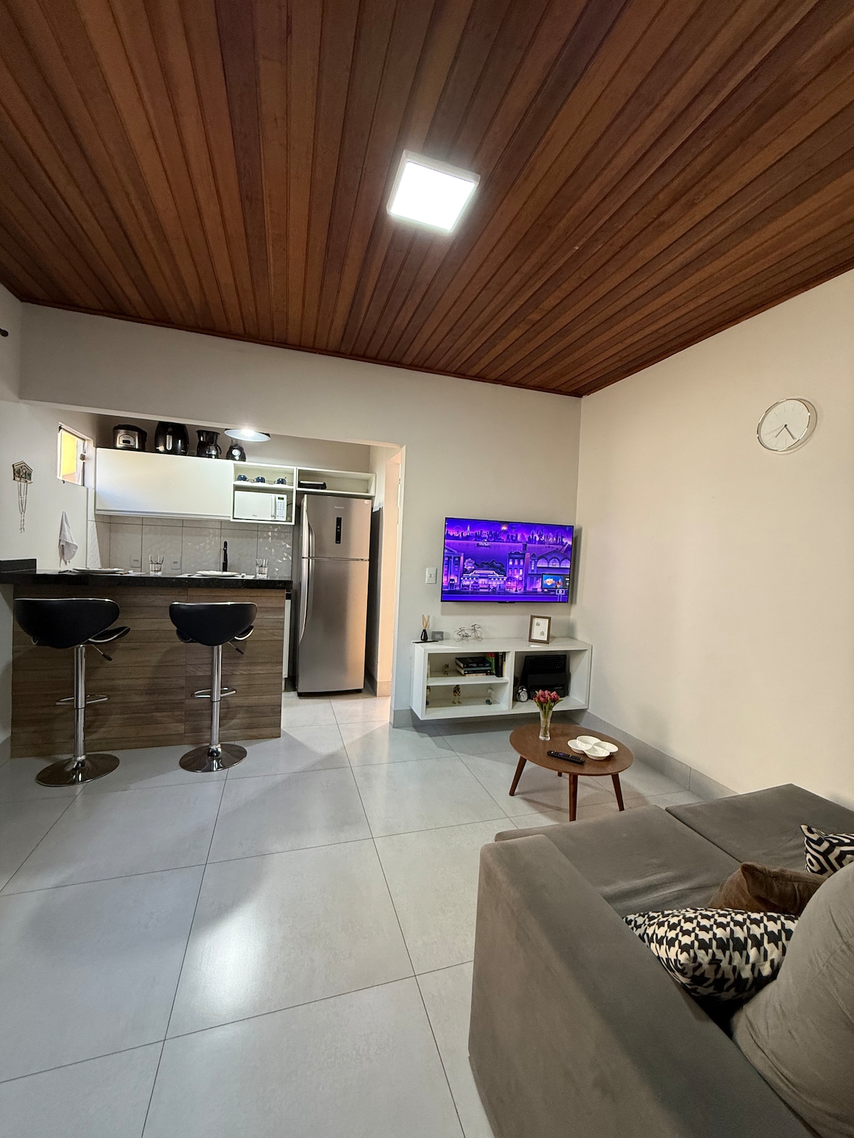 Ideal para relaxar! Ótima localização! próximo ao shopping, restaurantes , supermercados, farmácia, etc. - 1 quarto com cama de casal e ar condicionado; - 1 quarto com 1 colchão de casal, 1 colchão de solteiro, 1 mesa para trabalho e ventilador de teto; - 1 banheiro com chuveiro elétrico; - Sala com sofá, ar condicionado, TV 42' e mesa de jantar; - Cozinha com fogão, geladeira e utensílios. - Internet wi-fi e garagem para 01 carro. Abrace a simplicidade neste lugar tranquilo e bem-localizado!