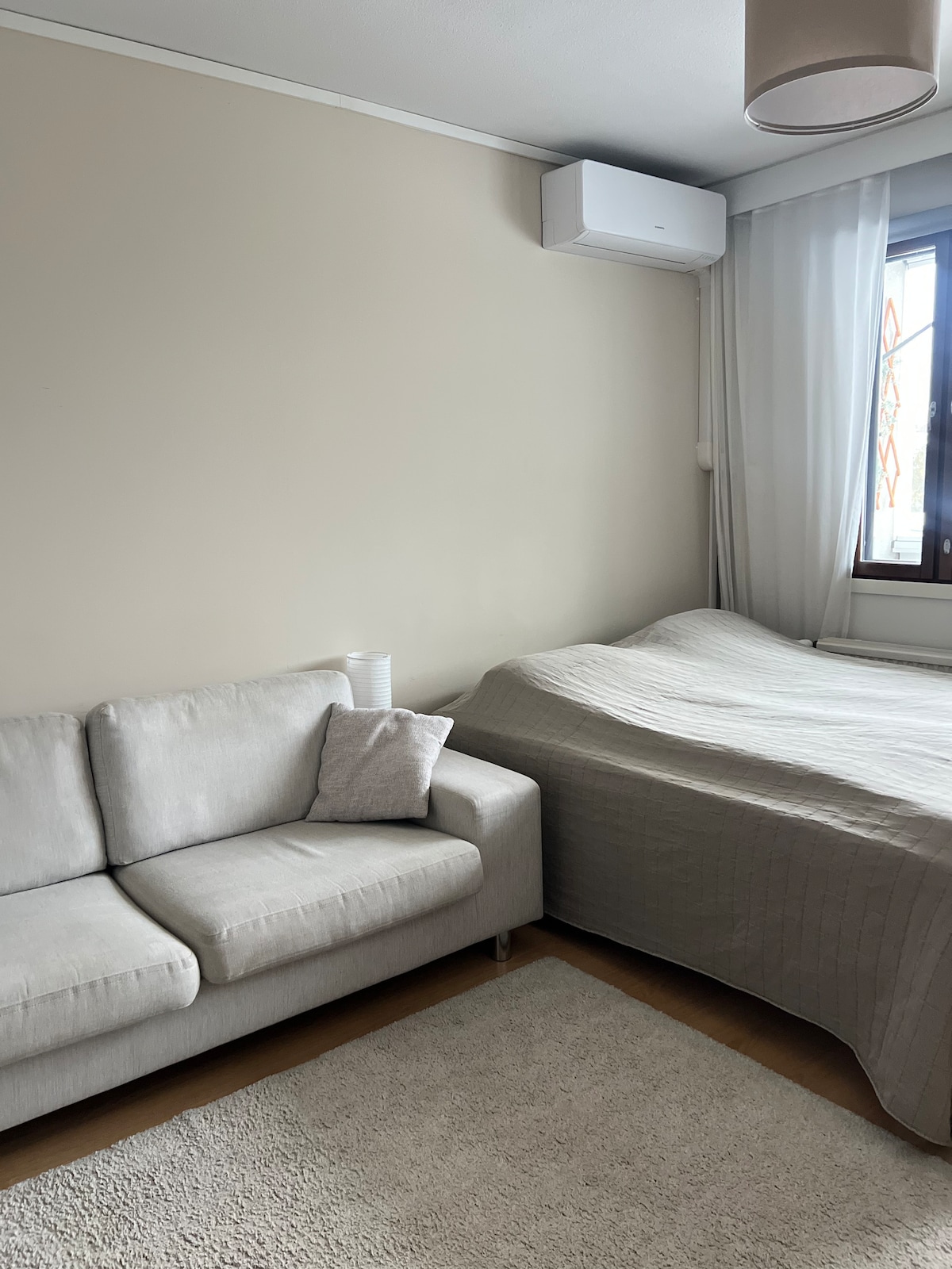 Clean and cozy one room (26 m2) apartment for 2 person with free parking, AC and balcony. Great location in the city center, but on a quiet street. Apartment has everything necessary for staying including towels, sheets and cooking stuff. The air condition brings comfort in the warm days. Apartment has one douple bed (160cm) and sofa. Only a few minutes walk away from the city center!