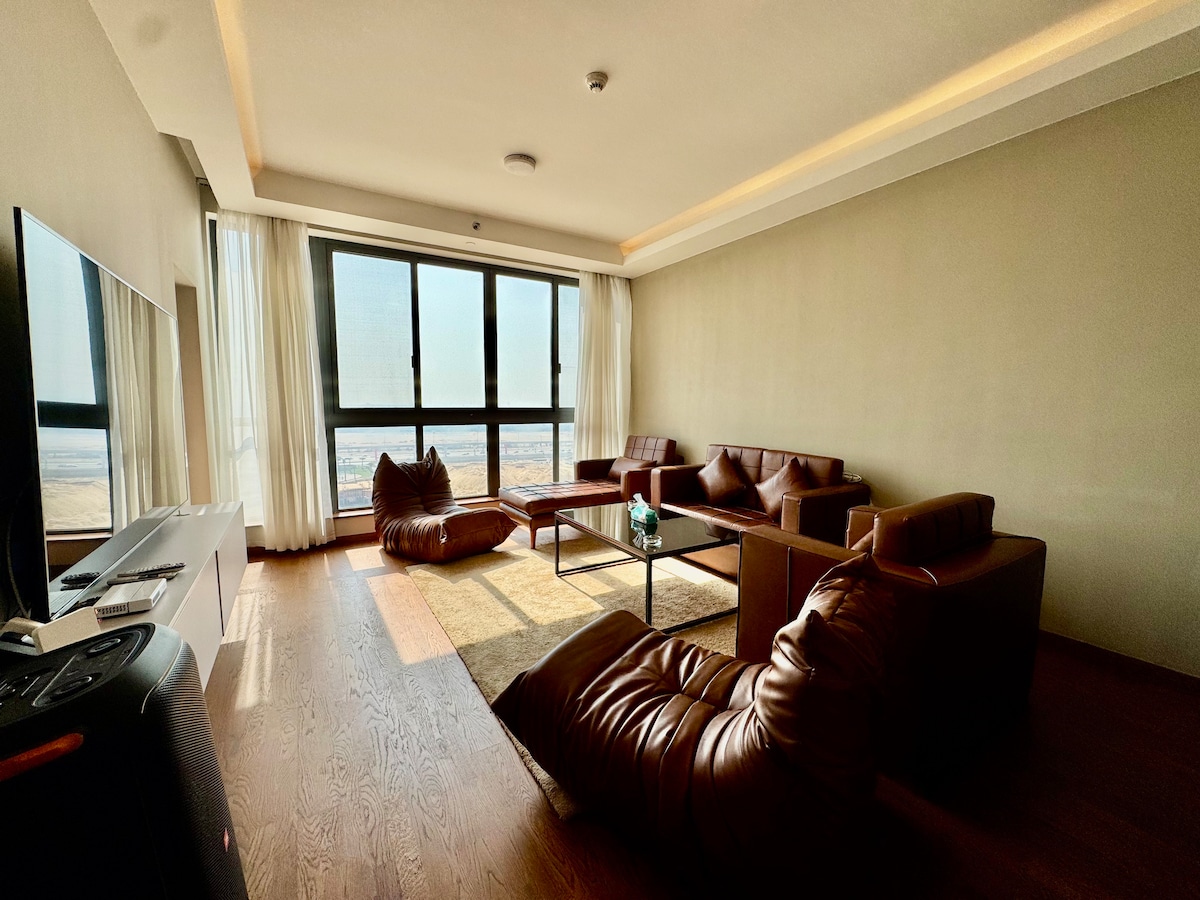 Discover luxury living in this brand new one-bedroom apartment located in the heart of Sheikh Zayed, 6th October, west of Cairo. Situated on the 15th floor, this stylish residence offers breathtaking panoramic views of Sheikh Zayed. We are just a three-minute walk from the commercial mall, where you’ll find a wide variety of restaurants, shops, and entertainment options