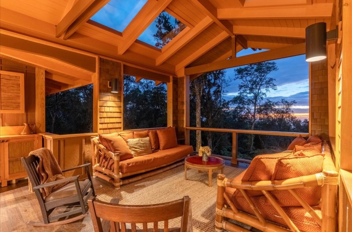 Bem-vindo à sua escapada tranquila acima das nuvens. Situado na floresta nativa de Ohia, nas colinas de Kona, este refúgio sereno oferece vistas panorâmicas deslumbrantes do Oceano Pacífico, da cidade de Kona e do pôr do sol noturno, tudo no conforto do seu lanai privativo. Perfeita para uma viagem de bem-estar, retiro em família ou apenas uma pausa tranquila do mundo, nossa casa foi projetada com tons calmantes e decoração inspirada na natureza, oferecendo o equilíbrio perfeito de beleza, conforto e intenção.
