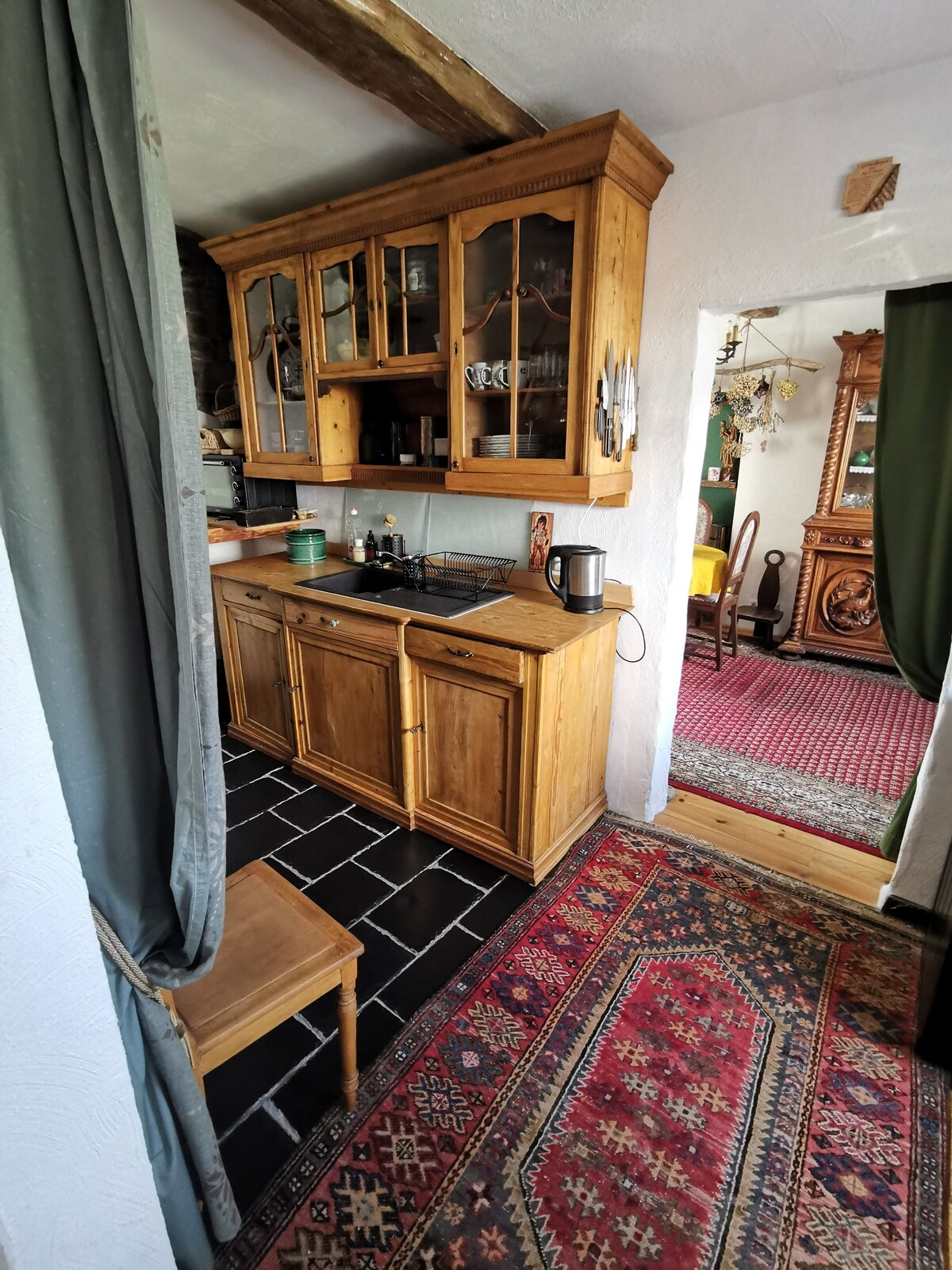 Unser "Häuschen" liegt direkt am Waldrand hinter unserem Wohnhaus, als Teil eines alten Mühlhofes! Zum Nachbarn sind wir 1 Kilometer entfernt und der nächste Supermarkt befindet sich in 6 Kilometer Entfernung. Es handelt sich um keine Luxusherberge, doch wer absolute Ruhe und ein Wanderparadies inmitten der schönsten Natur sucht, ist bei uns genau richtig! In der kalten Jahreszeit MUSS zusätzlich mit dem Kamin geheizt werden! ALLE, DIE MEHR KOMFORT SUCHEN, SCHAUT EUCH MEIN ANDERES INSERAT AN!