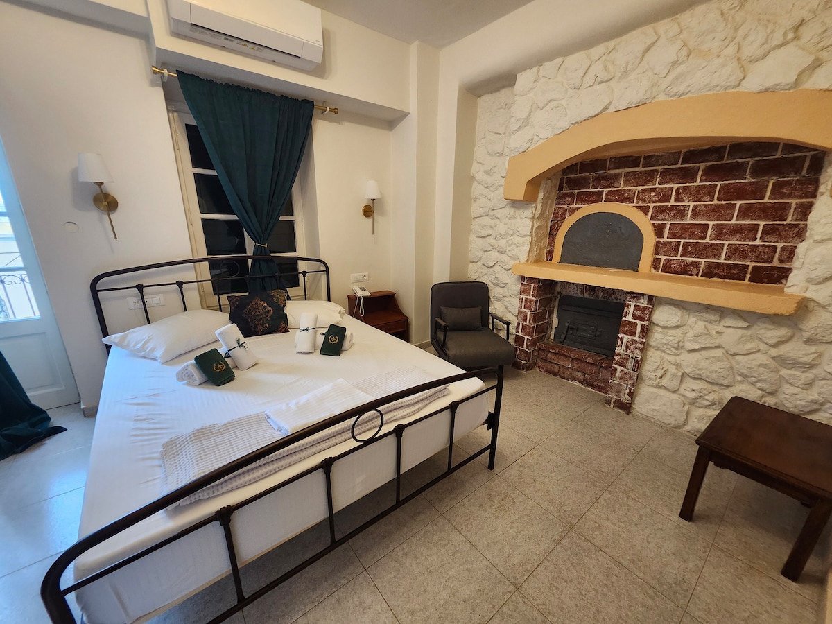 Nosso estúdio com uma cama de casal (ou duas camas de solteiro) e sua varanda compartilhada florida é perfeito para sua estadia de férias. Possui comodidades de self-catering, máquina de café Nespresso, geladeira, guarda-roupas espaçosos, ar condicionado, TV LCD de 32”, acesso Wi-Fi gratuito, secador de cabelo, roupões de banho e produtos de higiene pessoal Apivita de luxo. Personalize sua seleção de café da manhã, parte da nossa oferta, desde a noite anterior e nós a serviremos até sua varanda na manhã seguinte. Não hesite em entrar em contato conosco caso tenha mais alguma dúvida.