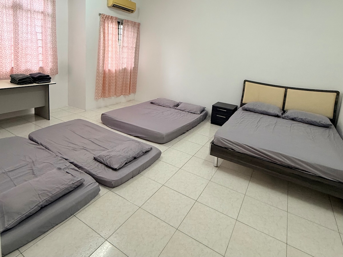 Localizada em Taman Mahsuri Jaya, a cerca de 1 km da UTAR, cercada por muitos restaurantes e cafés, como Starbucks, Sushi Mentai, Ally, McDonald's 24 horas, etc. Localização superconveniente. Temos colchões confortáveis de 11 polegadas e um interior aconchegante. Roupa de cama padrão para 8 pessoas. É possível adicionar colchões de chão para até 12 pessoas, com custos adicionais.