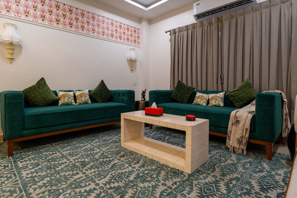 Entre em um apartamento de 2 quartos cuidadosamente projetado com linhas limpas, detalhes artísticos e conforto aconchegante. Situado no 1º andar, o apartamento oferece fácil acesso, juntamente com vistas panorâmicas serenas que adicionam calma à sua estadia. ● A 5 minutos do aeroporto ● Suporte de zelador 24×7 ● Café da manhã disponível por um custo adicional Cozinha ● totalmente equipada ● Ar-condicionado em todas as áreas ● Vistas panorâmicas