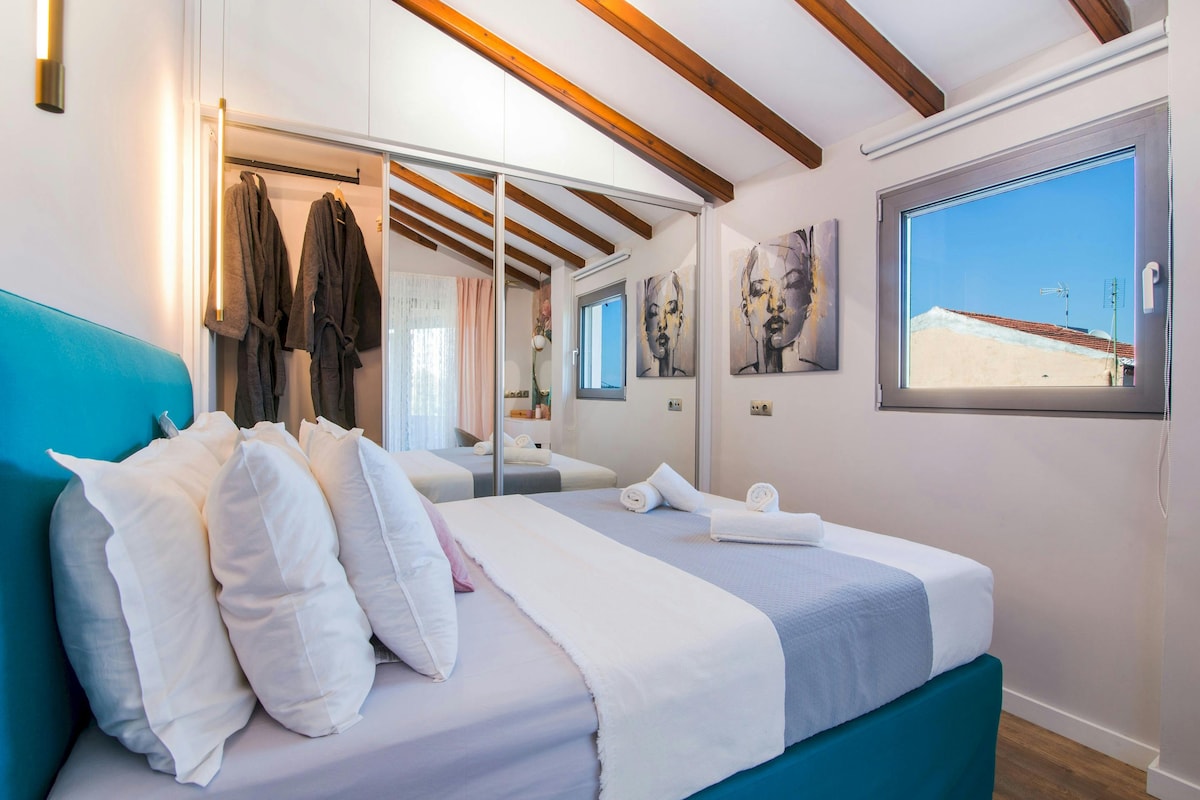 Apartamento no sótão com localização central em Corfu. 15'a pé do aeroporto, 15' para o centro da cidade, 2' para a estação de ônibus verde e ônibus da cidade. Cozinha totalmente equipada, sala de estar espaçosa, smart TV, espaço de trabalho dedicado, Wi-Fi rápido e gratuito, pequena varanda e ar-condicionado em todos os quartos. Colchões ergonômicos para espaço confortável, espaço de armazenamento e estacionamento gratuito. Você pode fazer self check-in com as fechaduras inteligentes. Tudo o que você precisa para ter uma estadia confortável e inesquecível. Perfeito para casais, famílias ou grupos de amigos.