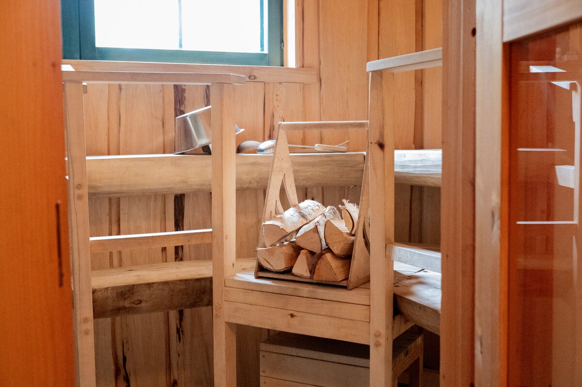 A vila está localizada em um terreno de encosta dominado por pinheiros. Há dois terraços lá fora. A entrada principal é do terraço do andar de cima. A atmosfera é criada por duas lareiras, e também há um dossel de churrasco no quintal. Excelente água de nascente flui da torneira. No andar de baixo, você encontrará um quarto com duas camas, bem como uma sauna, vestiário, banheiro e varanda. O vestiário tem uma lareira. No andar de cima há um quarto com cama de casal, um loft baixo de 10 m² com três camas, uma sala de estar, uma cozinha, um banheiro e uma varanda.