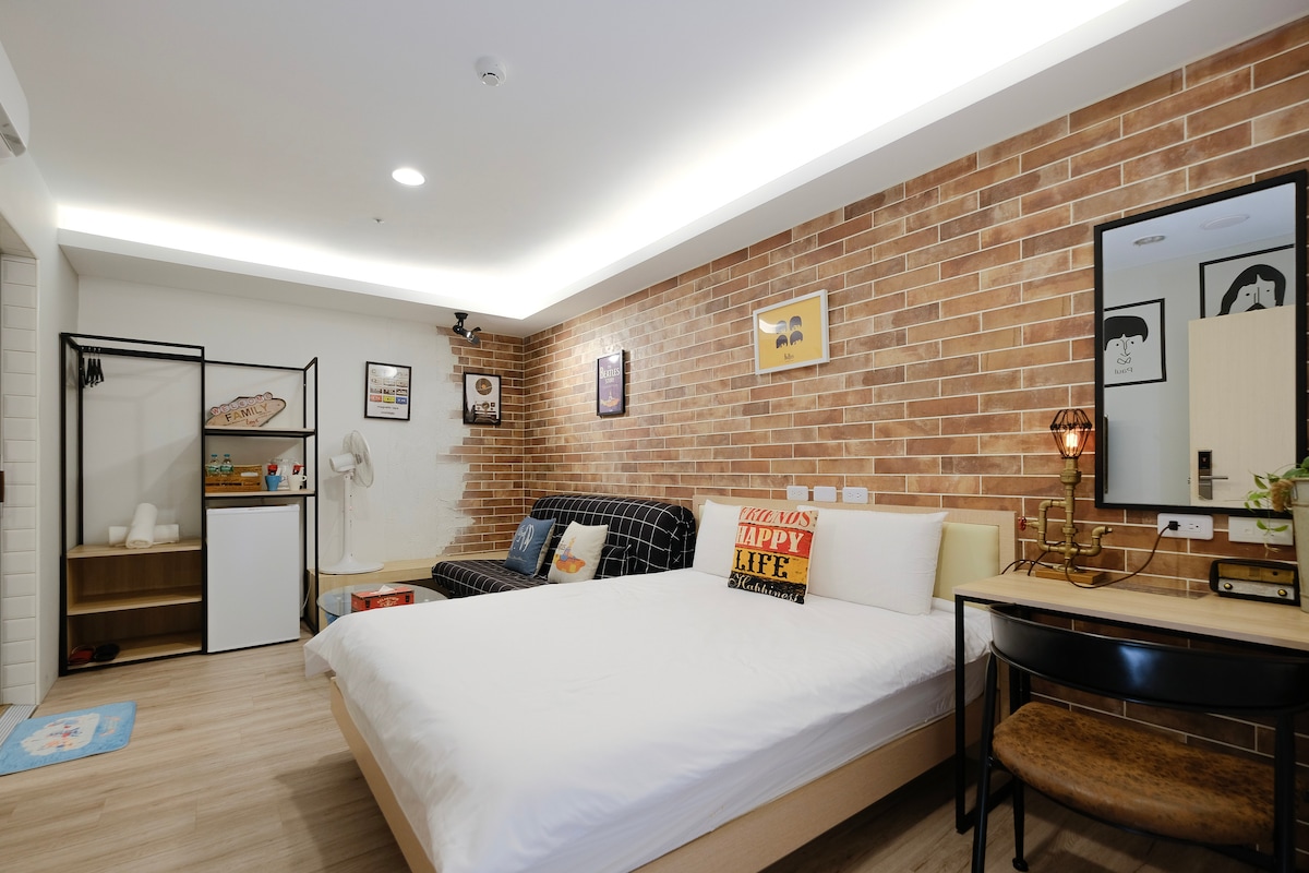 Localizado no animado distrito comercial de Sandu, na cidade de Kaohsiung, a cerca de 3 a 5 minutos a pé da estação Sanxiu MRT, a cerca de 15 minutos de MRT do aeroporto de Kaohsiung, a cerca de 10 minutos da estação Kaohsiung (HSR), cerca de 20 minutos, além do transporte público MRT, o metrô também se junta ao transporte público, fica a cerca de 10 minutos a pé da estação de metrô leve (C8), das principais atrações famosas de Kaohsiung, lojas de departamento Pacific Sogo, Shin Kong Mitsukoshi e loja de departamento Dajuan nas proximidades, IKEA, MLD Dai Alumínio Life Square e Carrefour também estão a cerca de 10 minutos a pé, além de várias lojas de departamento, há um mercado noturno autoguiado e mercado noturno de Xingzhong Esperando os viajantes explorarem vários lanches tradicionais, além disso, em termos de inteligência humana, há uma biblioteca Kaohsiung muito especial de métodos arquitetônicos, usando barras de aço suspensas, designs leves, com cortina de vidro, por isso também é a biblioteca mais penetrante do mundo, acredito que escolher esta acomodação é definitivamente a melhor escolha, seja é localização, compras, compras, transporte é muito conveniente. O estilo interior "quarto de estilo inglês" é dominado por fortes paredes de tijolos vermelhos e tijolos do metrô. Embora o quarto não abra janelas, o quarto está organizado como um todo, para que os hóspedes possam ter um descanso confortável e relaxante e espaço para dormir durante uma viagem completa, e o quarto está equipado com um conjunto completo de comodidades de banheiro privativo, para que os hóspedes possam ter privacidade e o cansaço da lavagem. O foco é que o preço é muito plano e definitivamente permitirá que você faça isso.