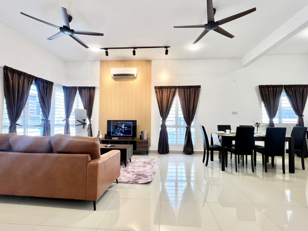 12pm-12pm 11 sleeps (9 bed spaces + 2 floor mattresses) 30min away from KL Located near several wedding venues within 2km radius, it's also suitable as a rest house for travelling guests and even as the bride preparation home before the big day With covered private pool & outdoor bbq + dining area, you can plan a private get together with family/friends. Vast choices of local food deliveries available. NO PETS NO EVENTS Please leave the house as you found them.