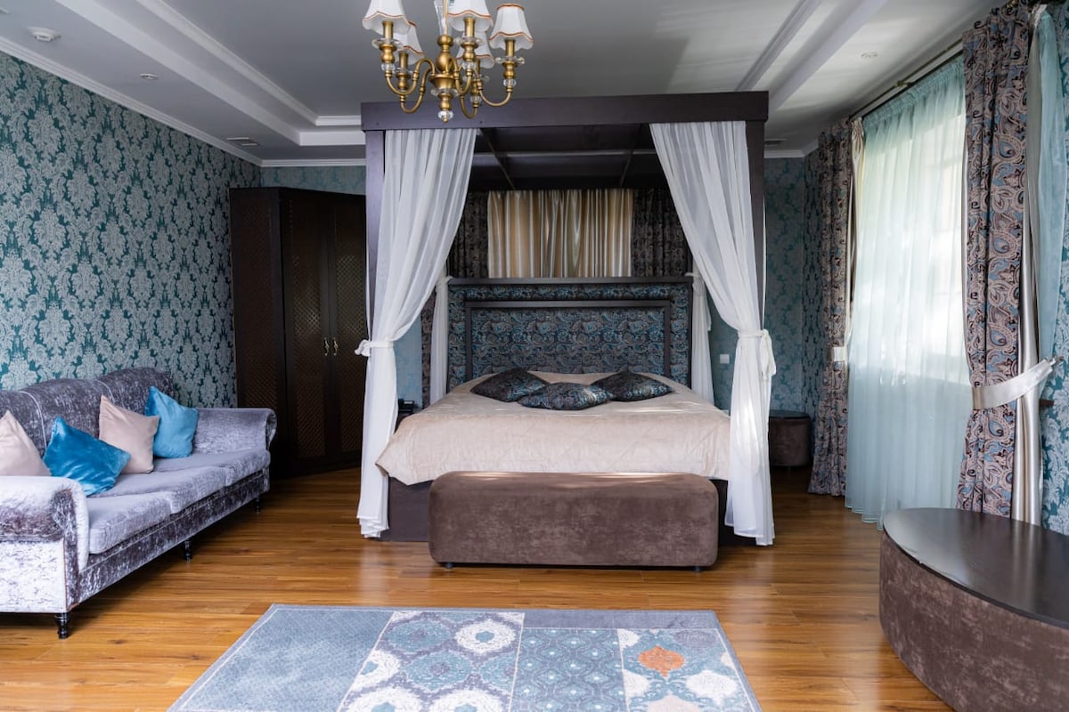 Элитные апартаменты расположен в Астане, в 4,4 км от монумента «Байтерек». К услугам гостей апартаменты с Wi-Fi, кухней, собственной ванной комнатой и телевизором с плоским экраном и спутниковыми каналами. «ЭКСПО-2017 Астана» находится в 8 км, а до мечети «Хазрет Султан» менее 1 км. Дворец Независимости находится в 5-7 минутах ходьбы. Расстояние до аэропорта Нур-Султан составляет 22 км. Расположение этого варианта — одно из лучших в городе Нур-Султан! Гости довольны!