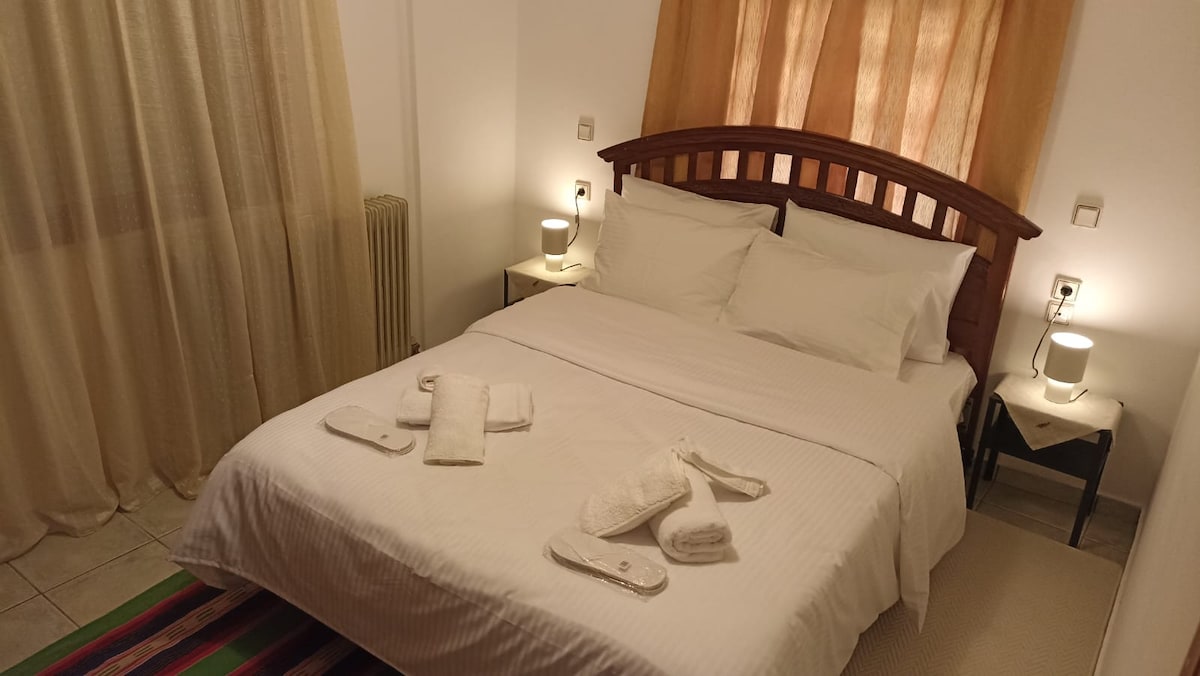 Aproveite sua estadia em nosso apartamento acolhedor, elegante e confortável localizado no coração de Kalabaka! Este espaço recentemente renovado é perfeito para um grupo de amigos, famílias ou casais que procuram uma estadia tranquila e podem acomodar confortavelmente até 6 pessoas. Inclui 2 quartos, 1 sala de estar, 1 banheiro, uma cozinha totalmente equipada e um depósito de armazenamento e tem acesso direto ao nosso encantador jardim, onde você pode desfrutar de seu café ou refeição. Fácil acesso a todas as lojas essenciais e pontos de ônibus para Meteora.