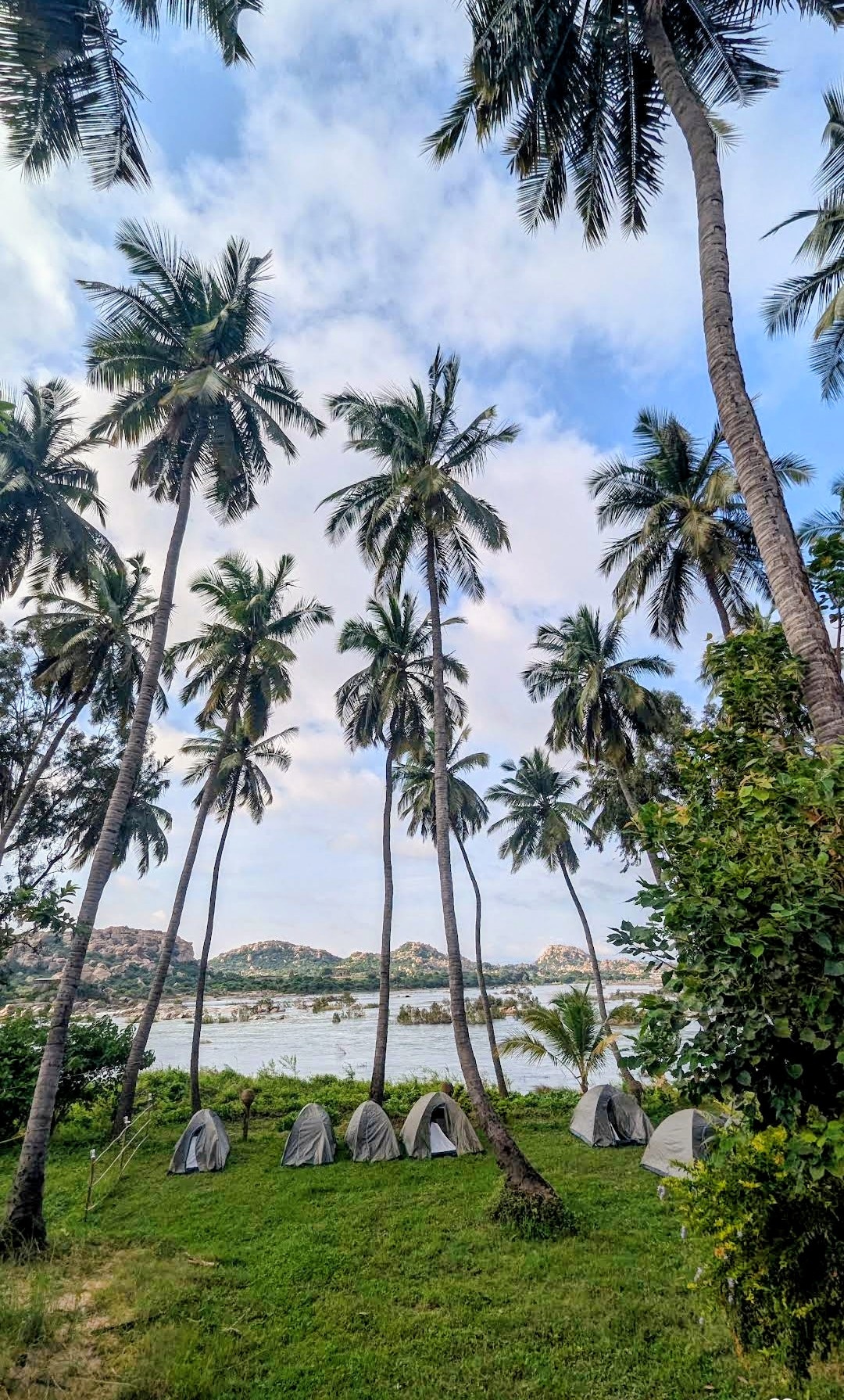 Experiência de acampamento perto do rio Hampi. Propriedade localizada perto de Anjinadrihill, Lago Sanapur, Ilha Hippie. Tendas de acampamento serão fornecidas para ficar.