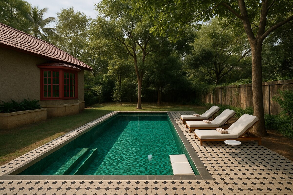 Villa Anvila - Uma serena vila privativa com piscina a apenas 90 minutos de Bengaluru (Silkboard), projetada para famílias e amigos próximos. Por que os hóspedes adoram: 🌴 Piscina privativa (não compartilhada) 🏡 Espaçoso 3BHK – ideal para famílias e amigos 🍖 Churrasco e jantar ao ar livre 🌿 Vibes de campo tranquilo 🚗 Fácil de dirigir de Bangalore Para quem é perfeito: Famílias de Bangalore se reúnem Pequenas celebrações como despedida de solteira, aniversários, etc. Casais e grupos de amigos Fim de semana e férias em casa!