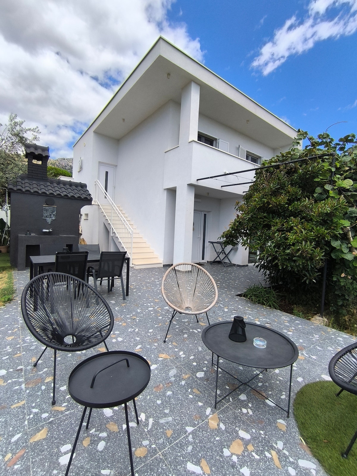 Oferecendo uma vista panorâmica da Baía de Stobreč e da foz do rio Žrnovnica, a Garden View Villa, a apenas 500 m da praia próxima, oferece uma vista deslumbrante, mas também oferece espaço de jardim confortável e tranquilo para momentos privados. Esta vila semi-separada de 120 metros quadrados (1300 pés quadrados) tem três varandas cobertas para desfrutar plenamente da vida ao ar livre, um deck de madeira de 40 metros quadrados para banhos de sol no sol mediterrâneo, sala de estar/jantar com TV LCD a cabo de 50", uma cozinha de estilo moderno totalmente equipada e ventiladores de teto na sala de estar e nos três quartos. Inclui uma máquina de lavar/secar roupa em um dos banheiros. Todos os móveis são elegantes e modernos e há 3 banheiros, um dos quais tem uma banheira (banheira de hidromassagem). Três varandas cobertas para desfrutar plenamente da vida ao ar livre, um deck de madeira de 40 metros quadrados para banhos de sol no sol mediterrâneo e jardim privativo cheio de plantas mediterrâneas. Estarei oferecendo ajuda/recomendações durante toda a sua estadia em Podstrana