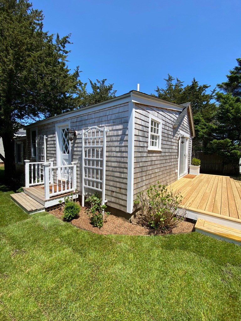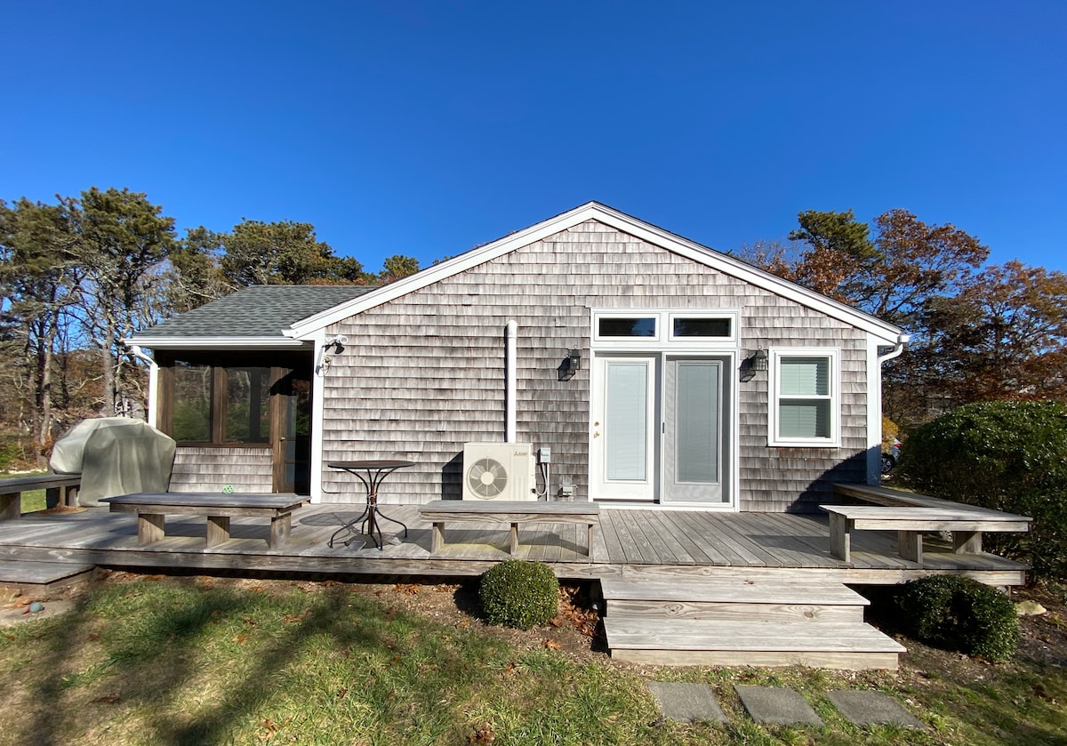 Esta é uma linda casa de hóspedes nova de 2 quartos na ciclovia que leva ao centro de Edgartown e tanto State Beach quanto South Beach, bem como a 1/4 de milha do famoso Morning Glory Farm Stand. Há tetos de catedral na sala de estar, que proporcionam uma sensação aberta e espaçosa. Há um grande deck na frente da casa com uma churrasqueira, mesa e cadeiras. Parte dela é coberta por sombra. Estacionamento separado para os hóspedes com privacidade, uma vez que fica a mais de 200 pés da casa principal.